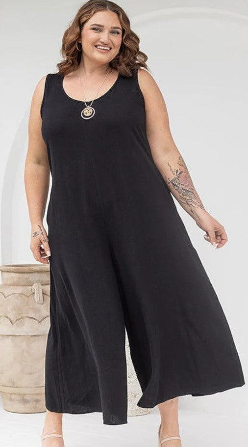 Step into a world of sophistication with the Sophia Jumpsuit in classic black! This sleeveless stunner boasts a round neckline and bra-friendly thick straps, ensuring both comfort and style. Zip up with the invisible zipper at the back and embrace the keyhole design with button closure, adding an element of allure to your look. Crafted to perfection, this jumpsuit is a flawless fusion of fashion and function, accentuating your confidence and empowering your every stride. Pair it with your favourite statement accessories and take centre stage at any event, be it a dinner date or a night out with friends!