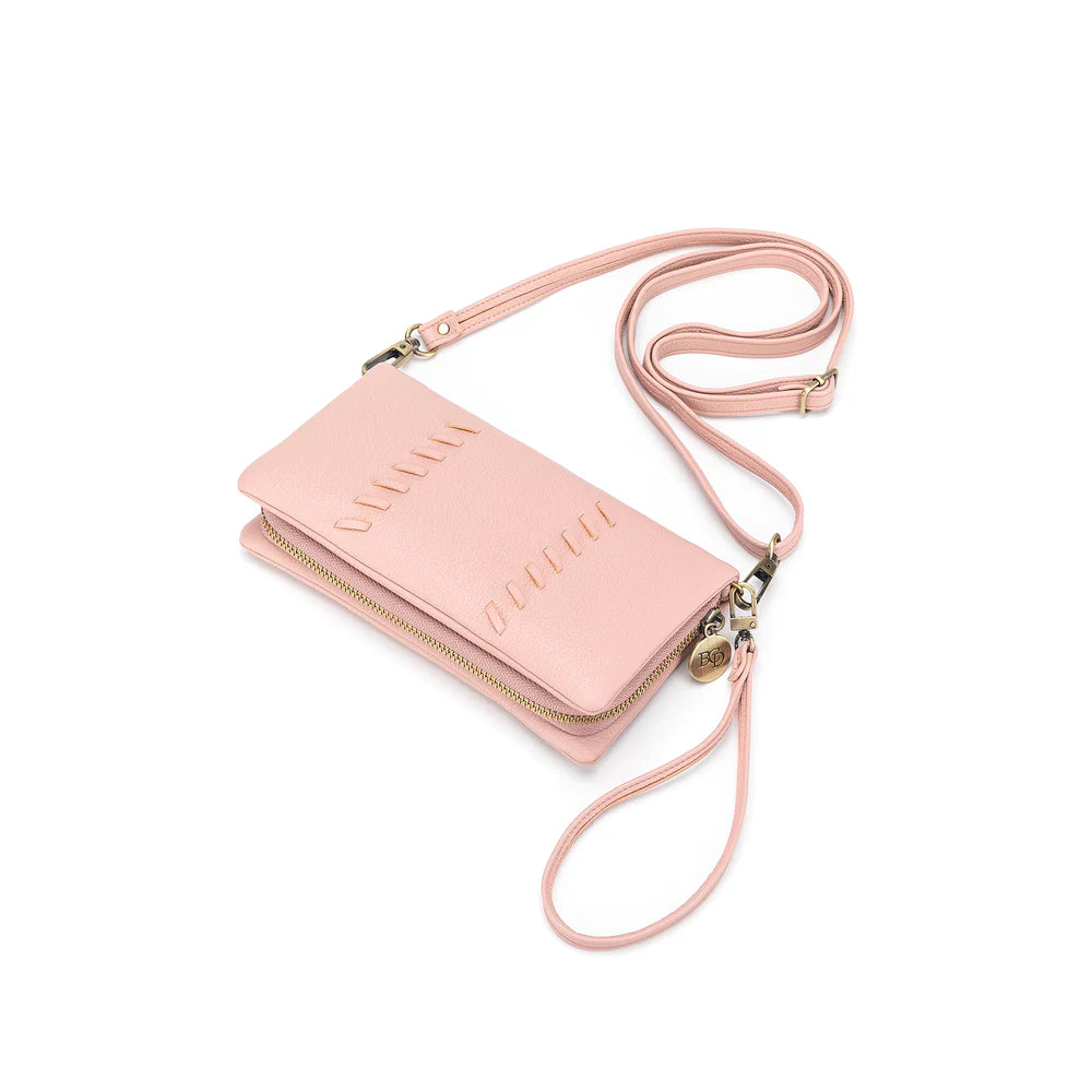 Internal Features: 12 credit card slots, multiple coin/cash compartments. Includes a wrist and cross body strap for easy styling.