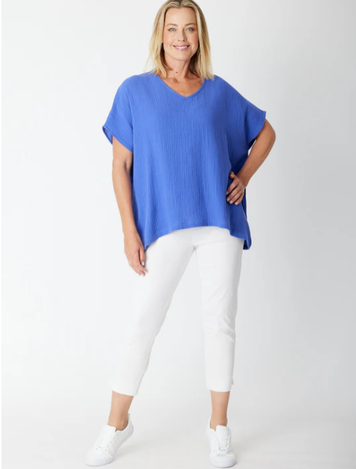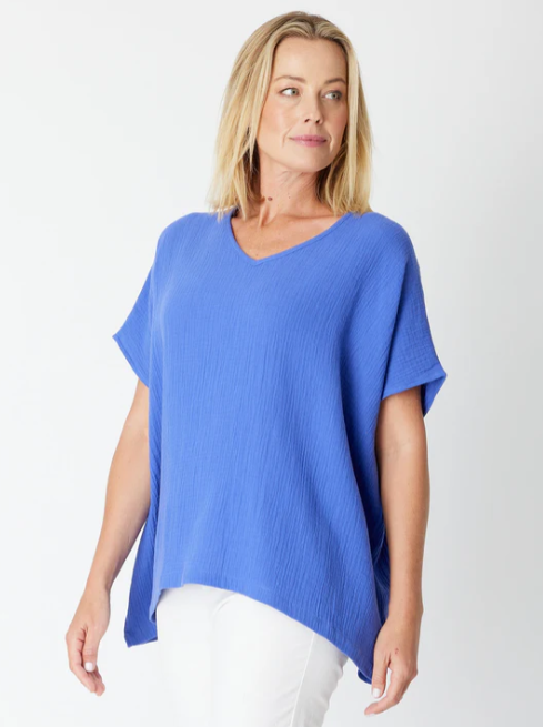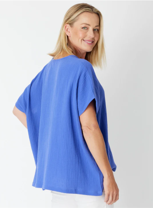 Cordelia St | Bubble Cotton Kimono Top - Wedgewood