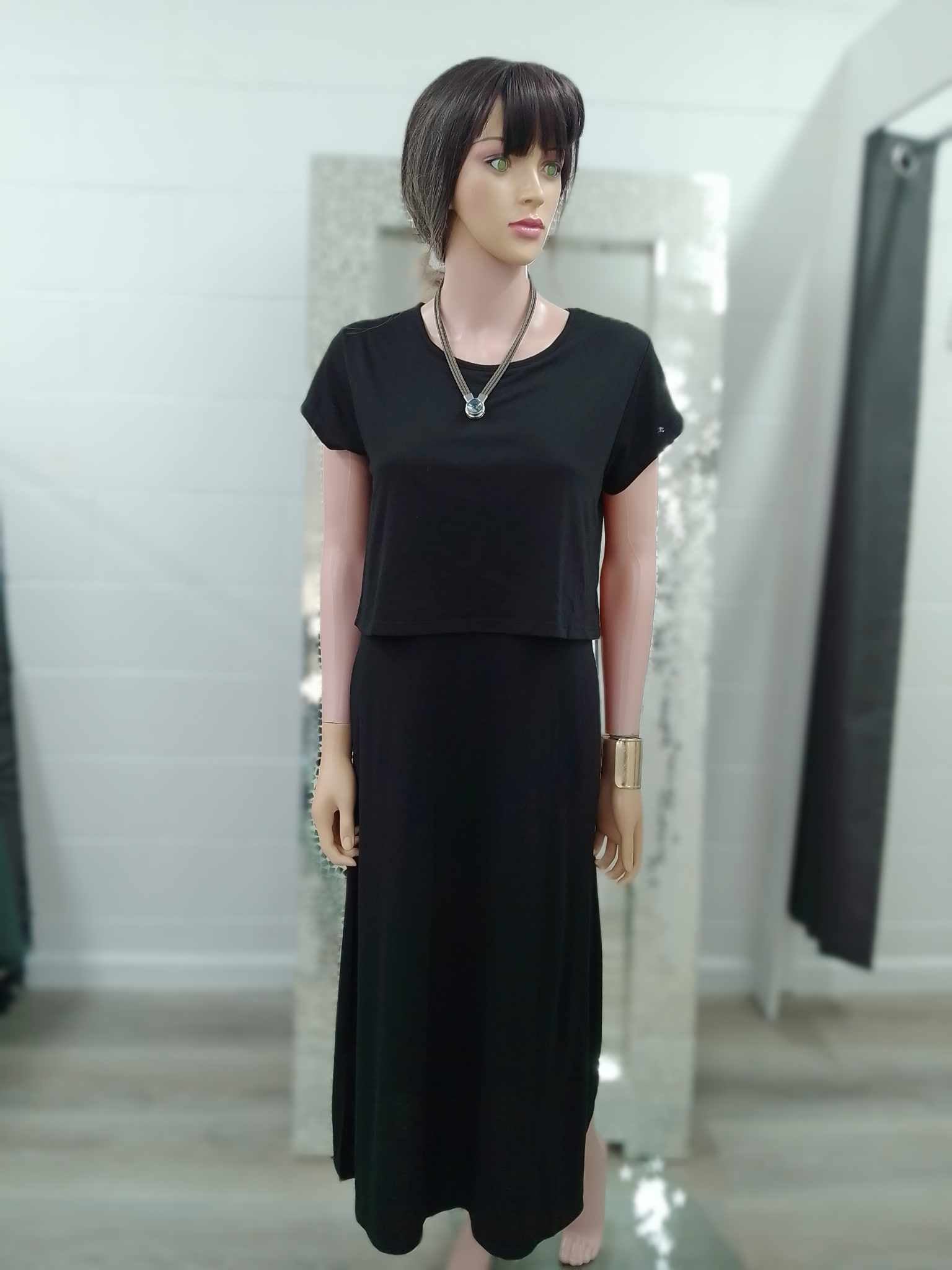 The Must Have Layer Dress in black features a simple yet flattering design. Pair with a white crew neck underneath or long sleeve body top for a modern look for the cooler months or as is for summer fun
