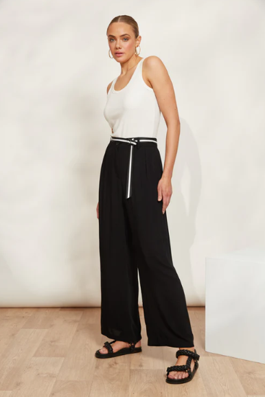 t's appertivo hour, and the La Mer Pant is here to steal the show with its smart-casual flair! Sitting high on your waist, they're cinched by a stylish contrast belt, ensuring you look and feel fabulous. The straight leg profile and the luxurious fabric drape create a beautifully fluid silhouette with practical inseam pockets for added functionality. Match them with a tank, strappy sandals, and stunning metallic accessories, and get ready to toast to good times with a cheerful 'cin cin'!