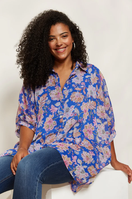 Workwear that does weekends, the Sereno Relaxed Shirt is the ultimate multitasker. In a relaxed fit, this shirt offers a flattering fit for all shapes and sizes. It features classic details, elevated by batwing sleeves, a flowing high-low hem, and shimmering lurex threading for that extra sparkle. Tuck it into a maxi skirt for a professional look or with fitted denim jeans for a chic weekend vibe.