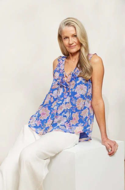 With a charming ruffle collar, V-neck, and playful drawstring, the Sereno Tank is perfect for any occasion. Shimmering lurex threading adds a lovely sparkle that will turn heads whether you're going out for dinner or hanging out with friends. Paired with linen pants or a breezy maxi skirt, don't forget to add some metallic accents for extra flair!