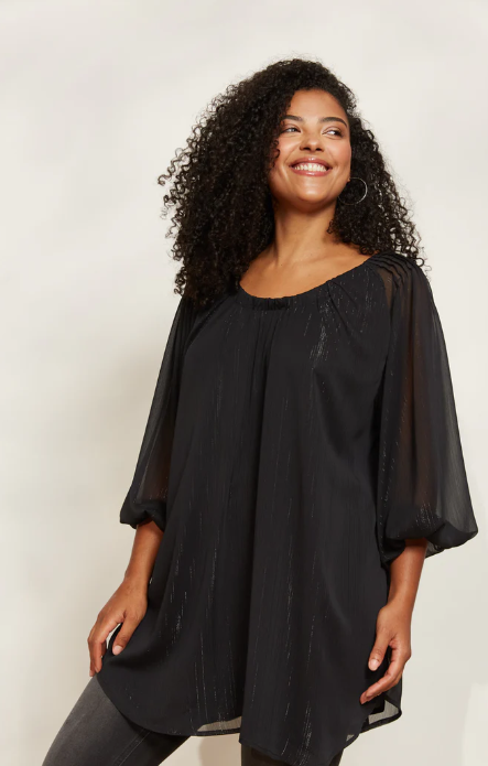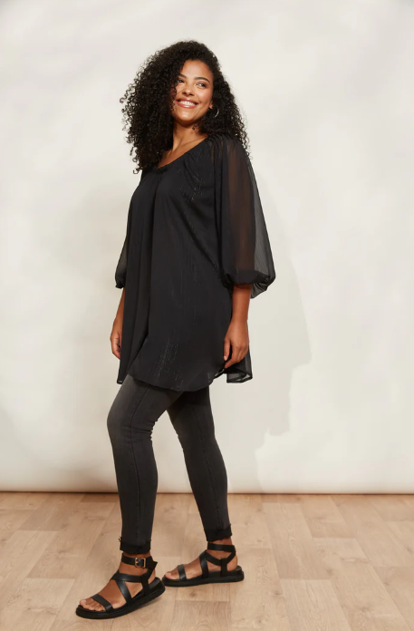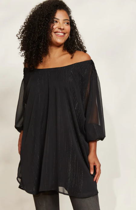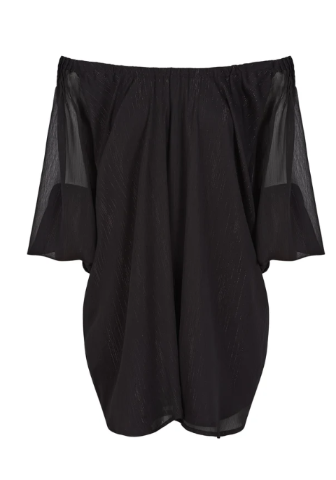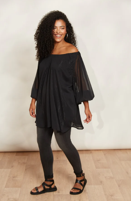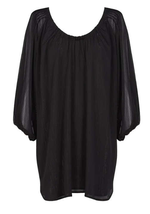 The Solstice Top is a testament to how great style can be simple. Airy and effortless, it features an elasticised neck that you can wear on or off the shoulder, perfect for those sunny days ahead. With sheer balloon sleeves, a curved hem, and a little shine from the lurex threading, this top brings the unexpected to your everyday looks. Pair it with fitted denim and strappy sandals for a laid-back yet chic ensemble.