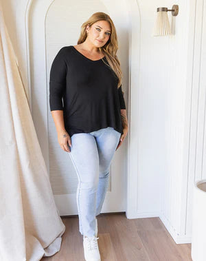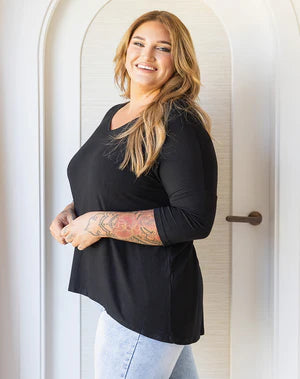 Meet the Autumn Tee! The simple cut is both flattering and stylish. Style with your favourite jeans or jogger pants for effortless everyday style. Fabricated in our super soft stretch fabric our Autumn Tee is lovely for layering too, under a cardi, blazer or shrug.