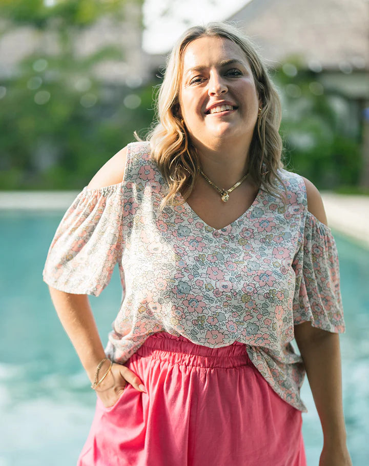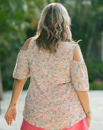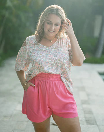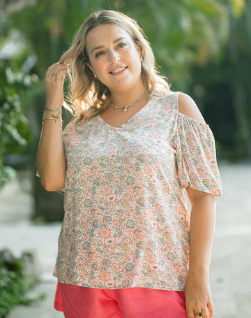 This relaxed style, in a beautiful breathable fabric is perfect for the warmer months ahead. The flowing style can be worn out, knotted or tucked to flatter your shape. Features include a v neckline, mid sleeve and slight hi-low hem. The focal shoulder cut-outs reveal the perfect hint of skin and give you the flexibility to elevate this top for an occasion.