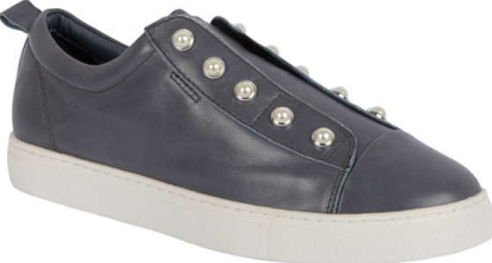 Handcrafted using soft quality leathers, a non-slip flexible rubber sole and a padded insole, you can ensure comfort all day long. This sneaker also features two rows of pearl embellishments running down the front of the shoe.