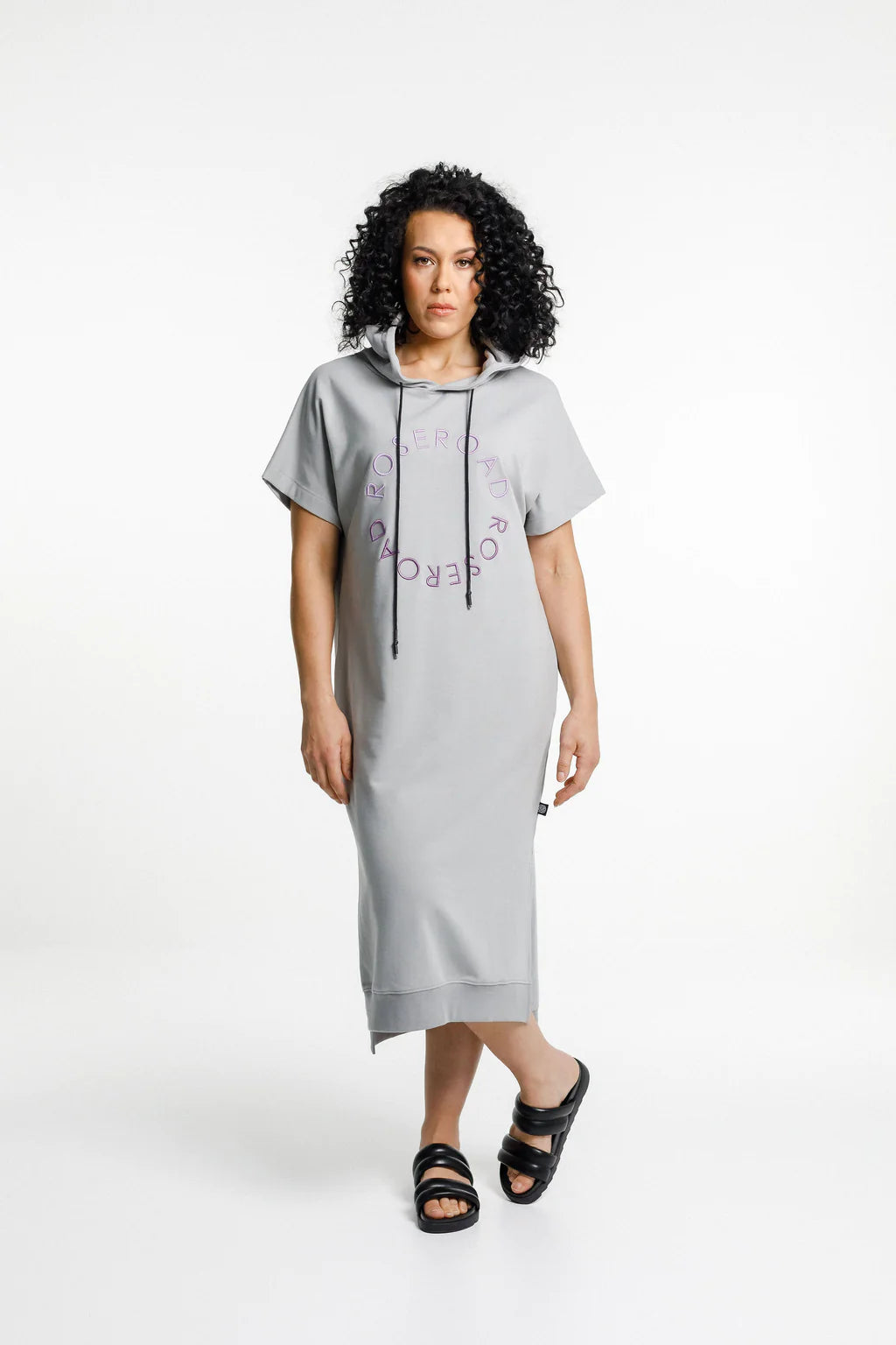 This relaxed style dress is oversized and comfortable. Featuring a drawstring hood, cropped sleeve, in seam pockets, side splits and our signature Rose Road rose tonal embossed on the front.