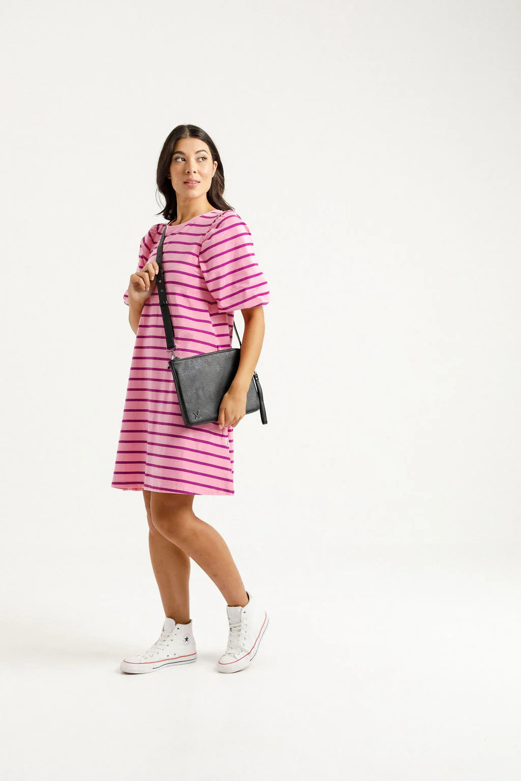 The clutch has a removable wristlet, and a removable across body strap (length on this is adjustable) - so you choose how you want to style and wear it.