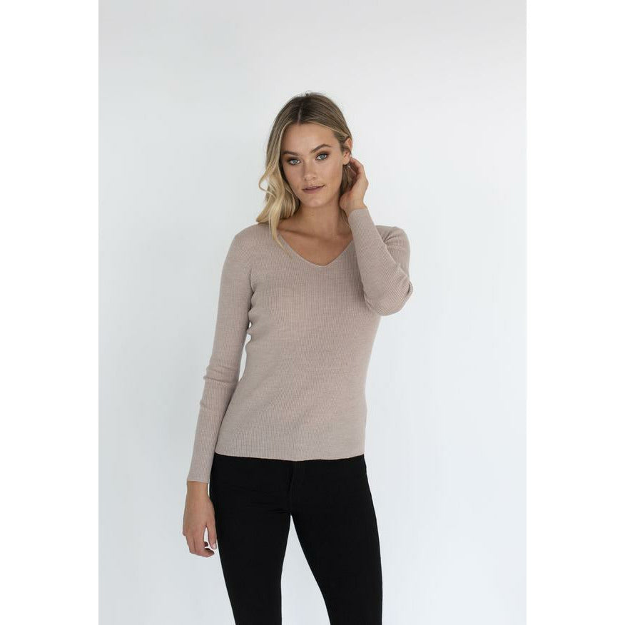 Humidity Merino V-Neck Basic - Stone