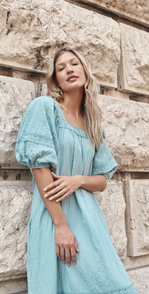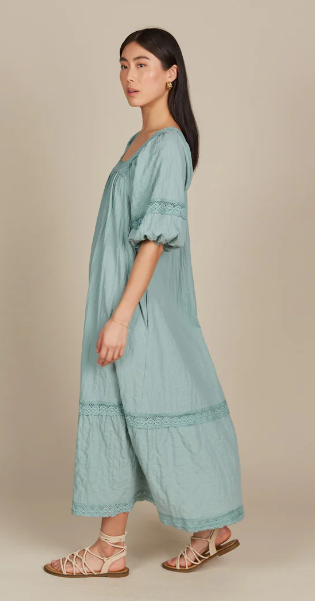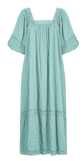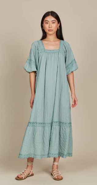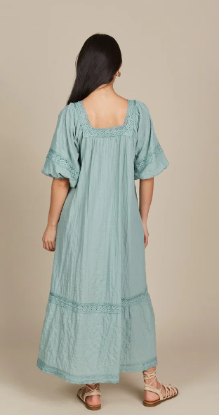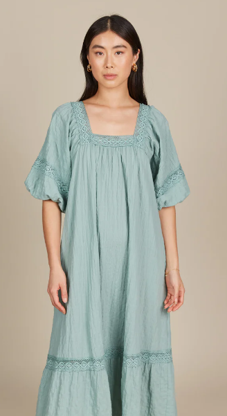 For those Sunday mornings at the market or days filled with errands, the Fleur Maxi is your go-to dress. With its relaxed fit and comfortable textured cotton blend, this maxi is effortless to wear. Lovely lace trimmings highlight the square neck, bishop sleeves, and hem, infusing the dress with a gentle, feminine charm. Slip into slides, grab a tote bag, and you're ready for the weekend!