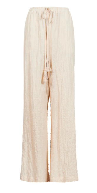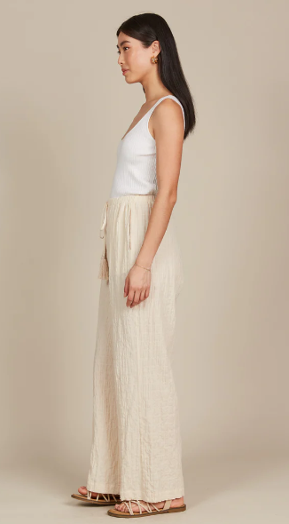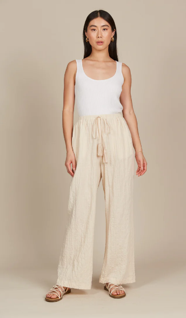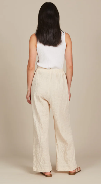 For a lunch date or a chilled lounge session, opt for the Fleur Pant. The textured cotton fabric of these pants boasts a charming crinkle look that adds a lovely contrast when paired with a simple top. Featuring an elastic waist and drawstring, they guarantee a comfortable fit before falling into a straight leg. Style them with a tank or basic t-shirt and slides for a laid-back yet chic look.