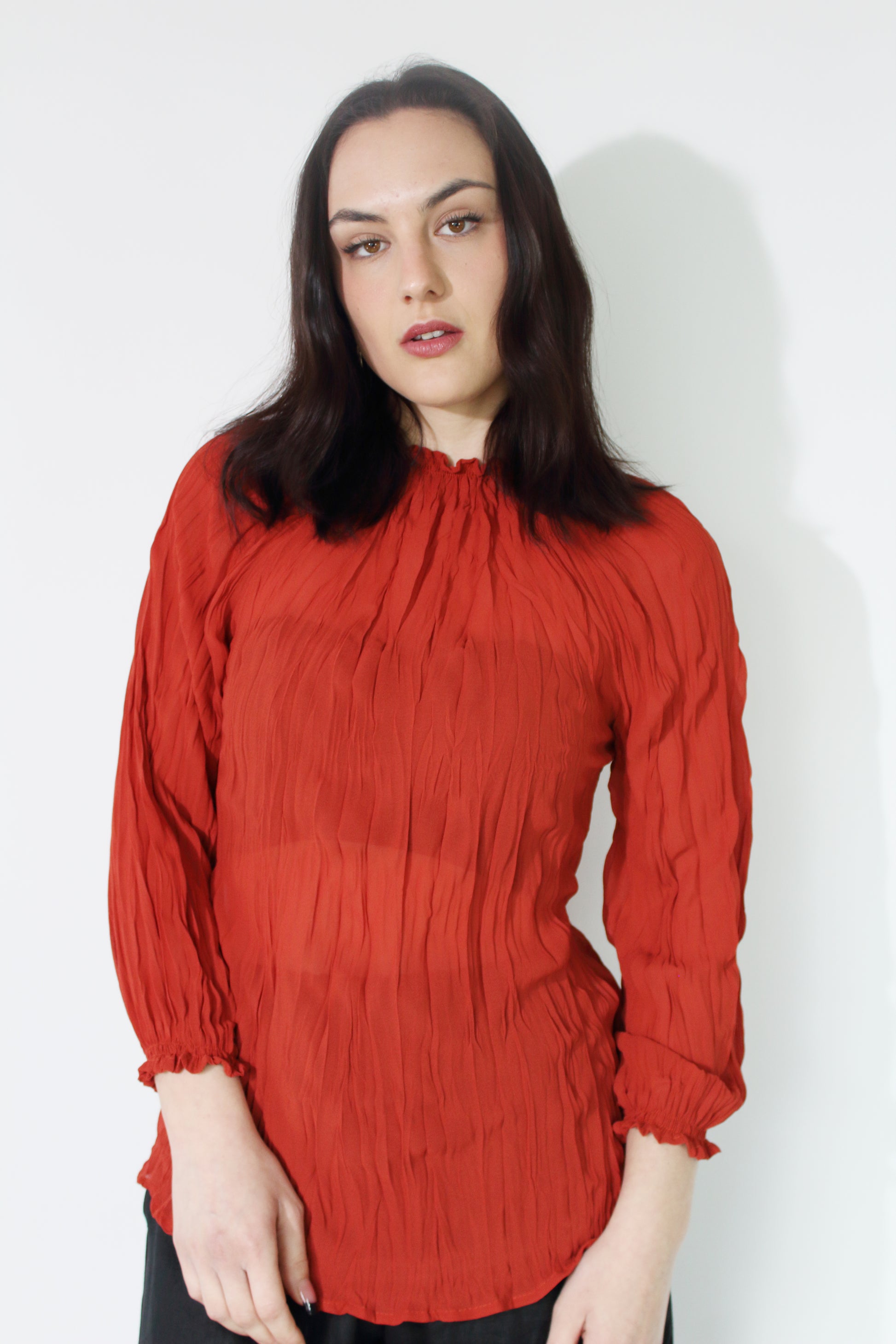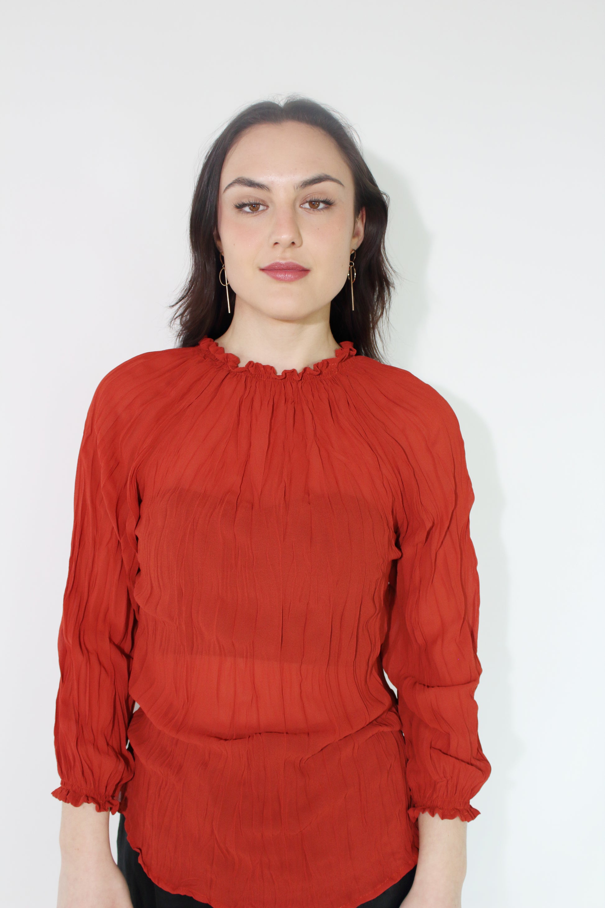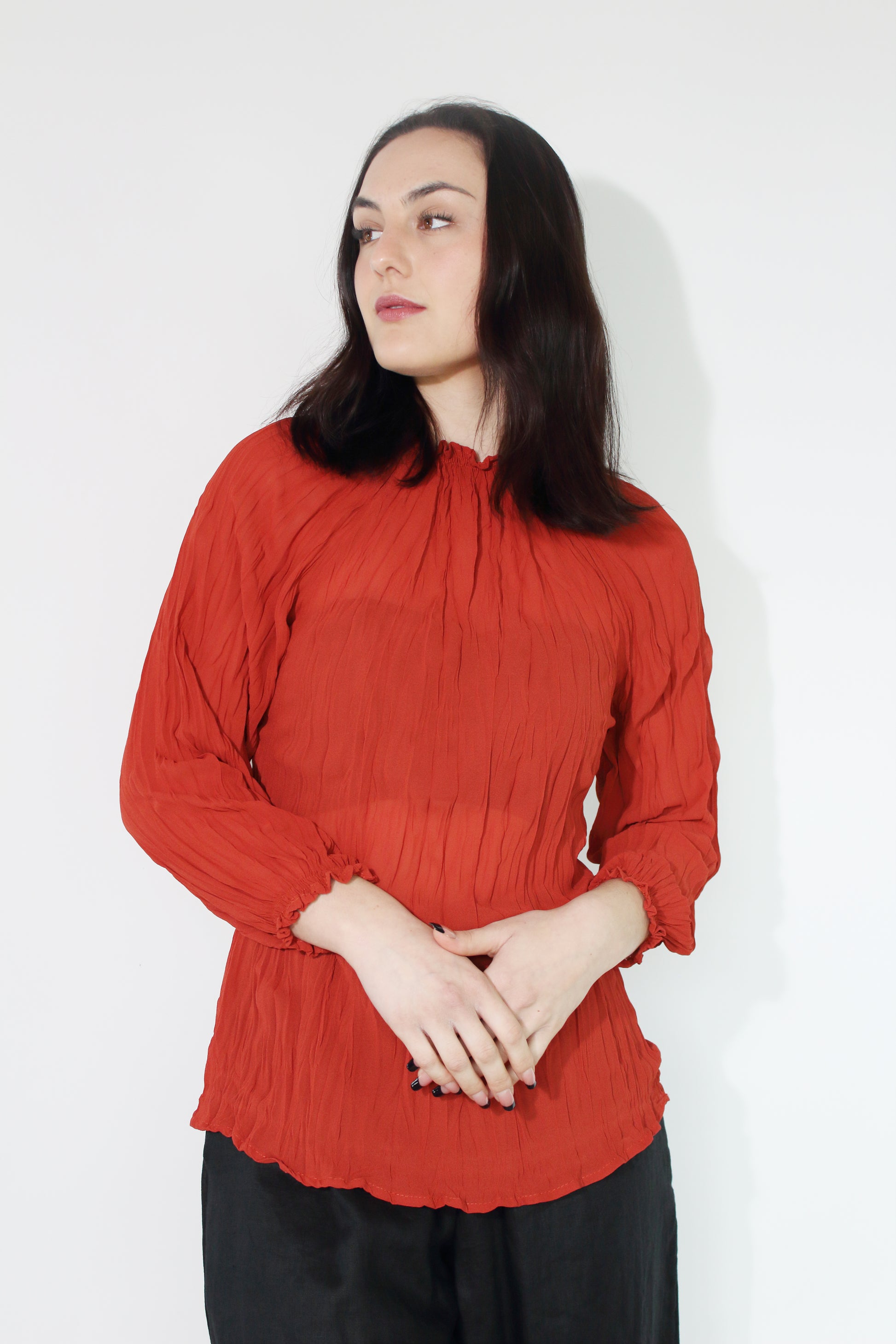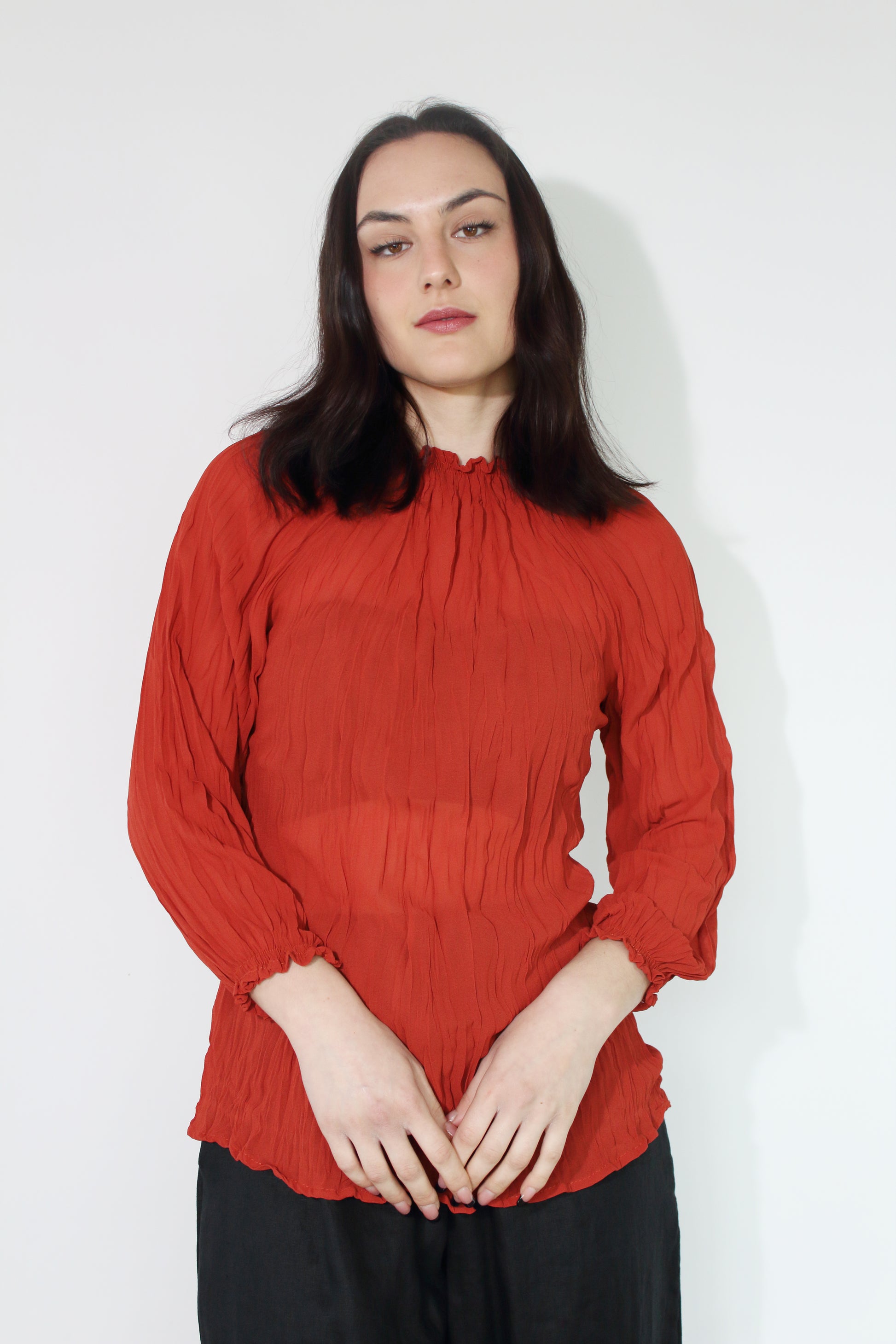 JACLYN M Grace Crinkle Blouse - Rust