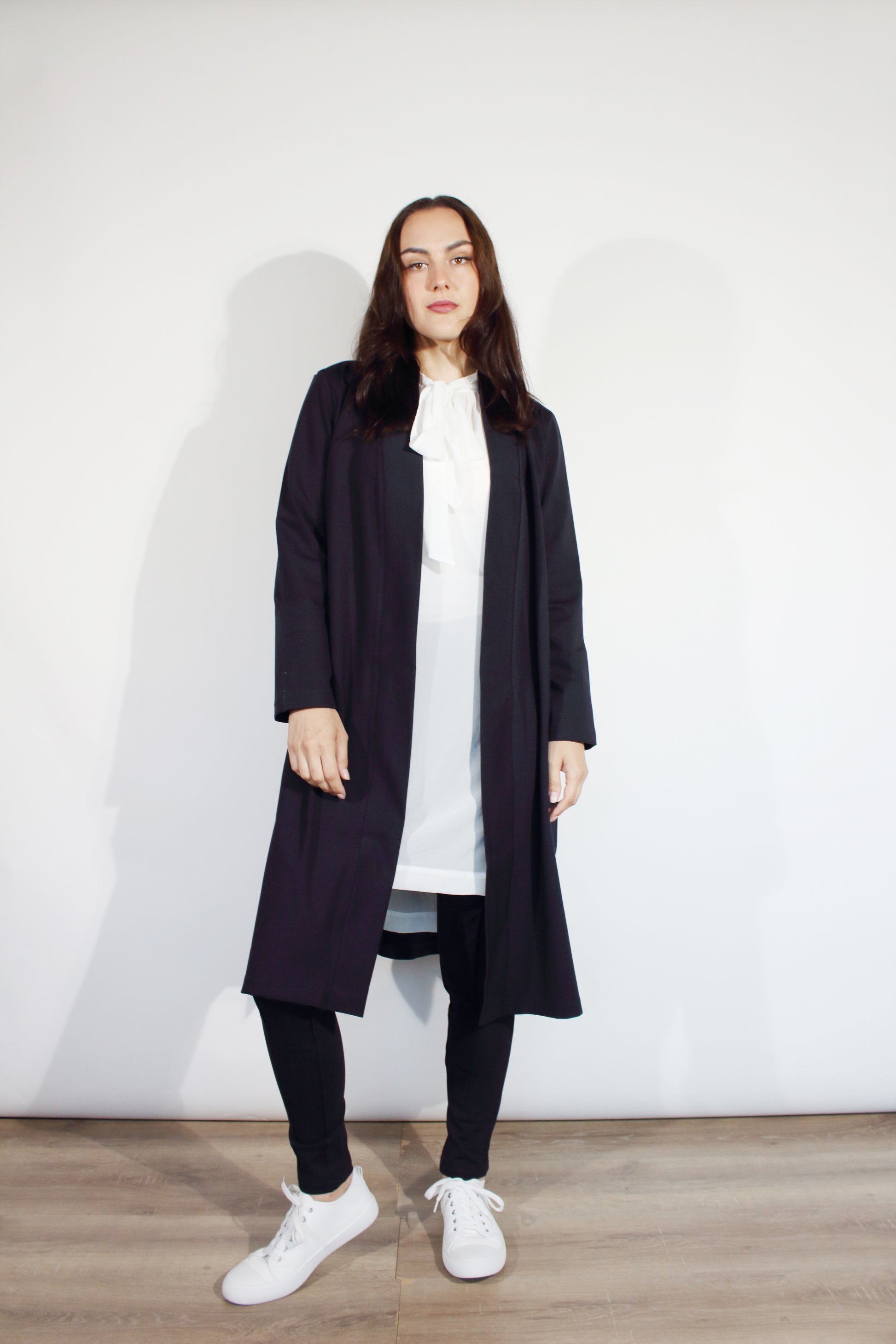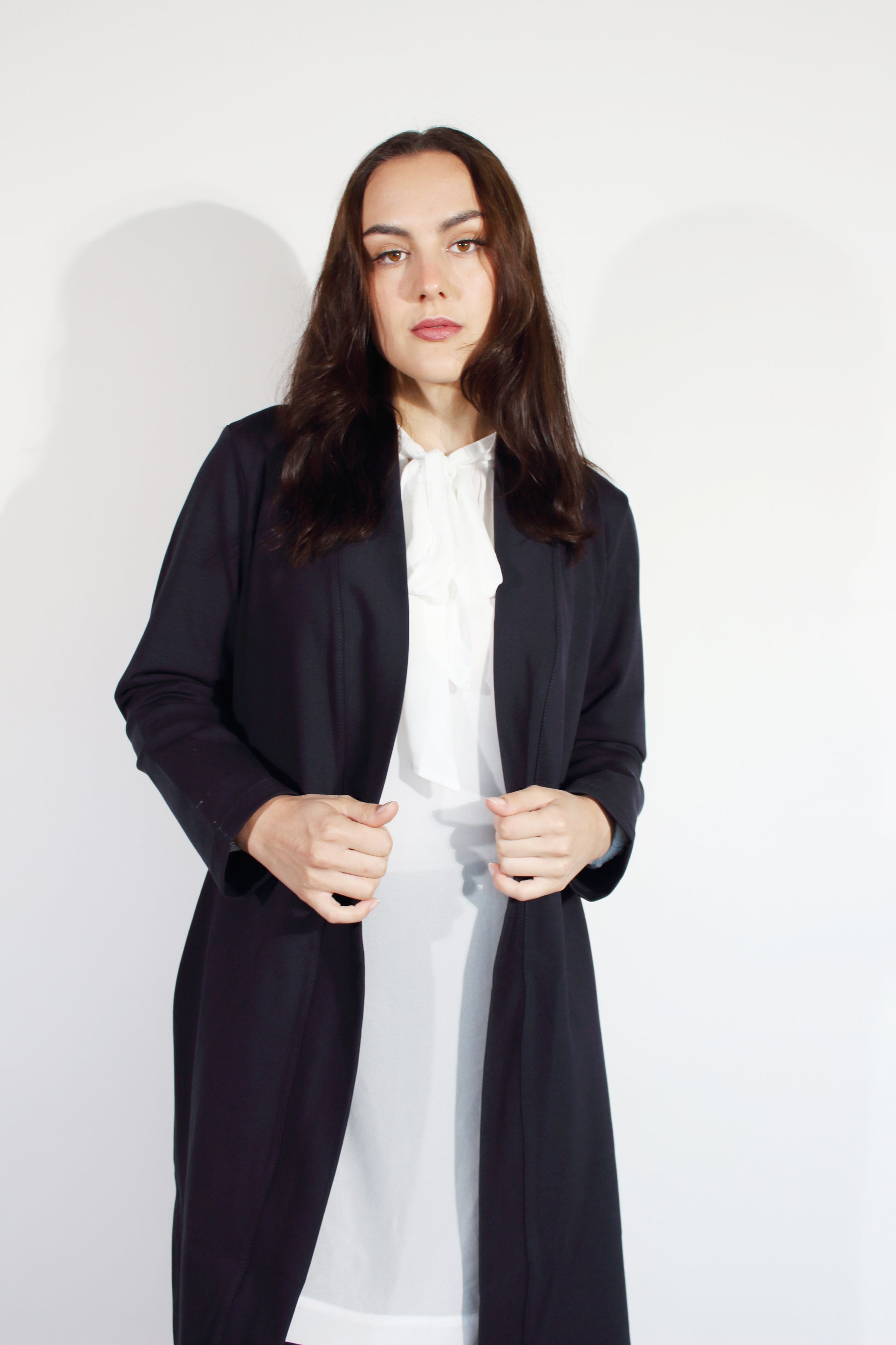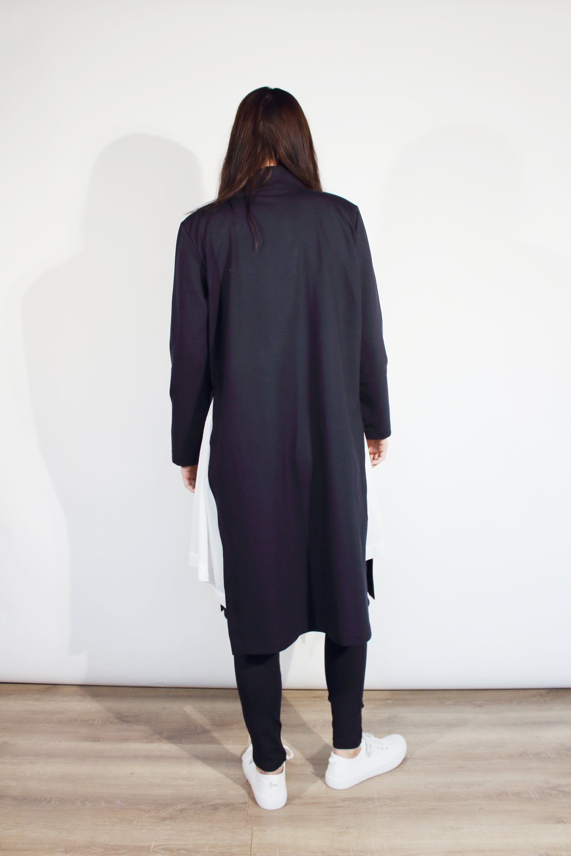 Ponte coat with High side splits, full length sleeves and wide band down front.