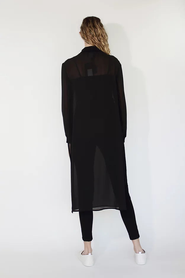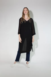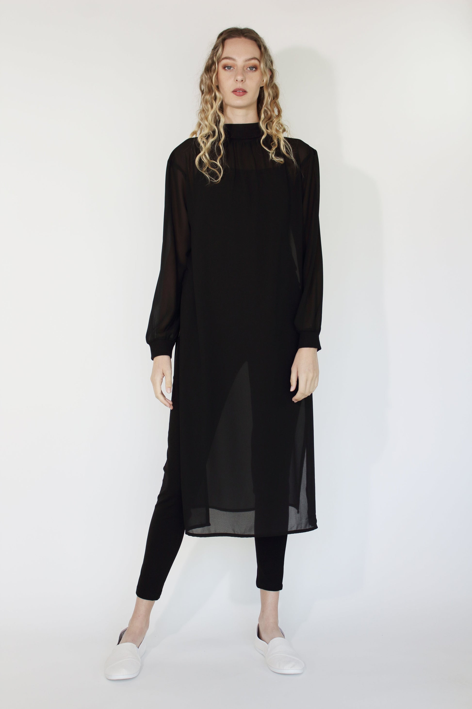 Sheer Georgette dress designed to be worn layered. Soft cotton rib neck and sleeve cuffs.