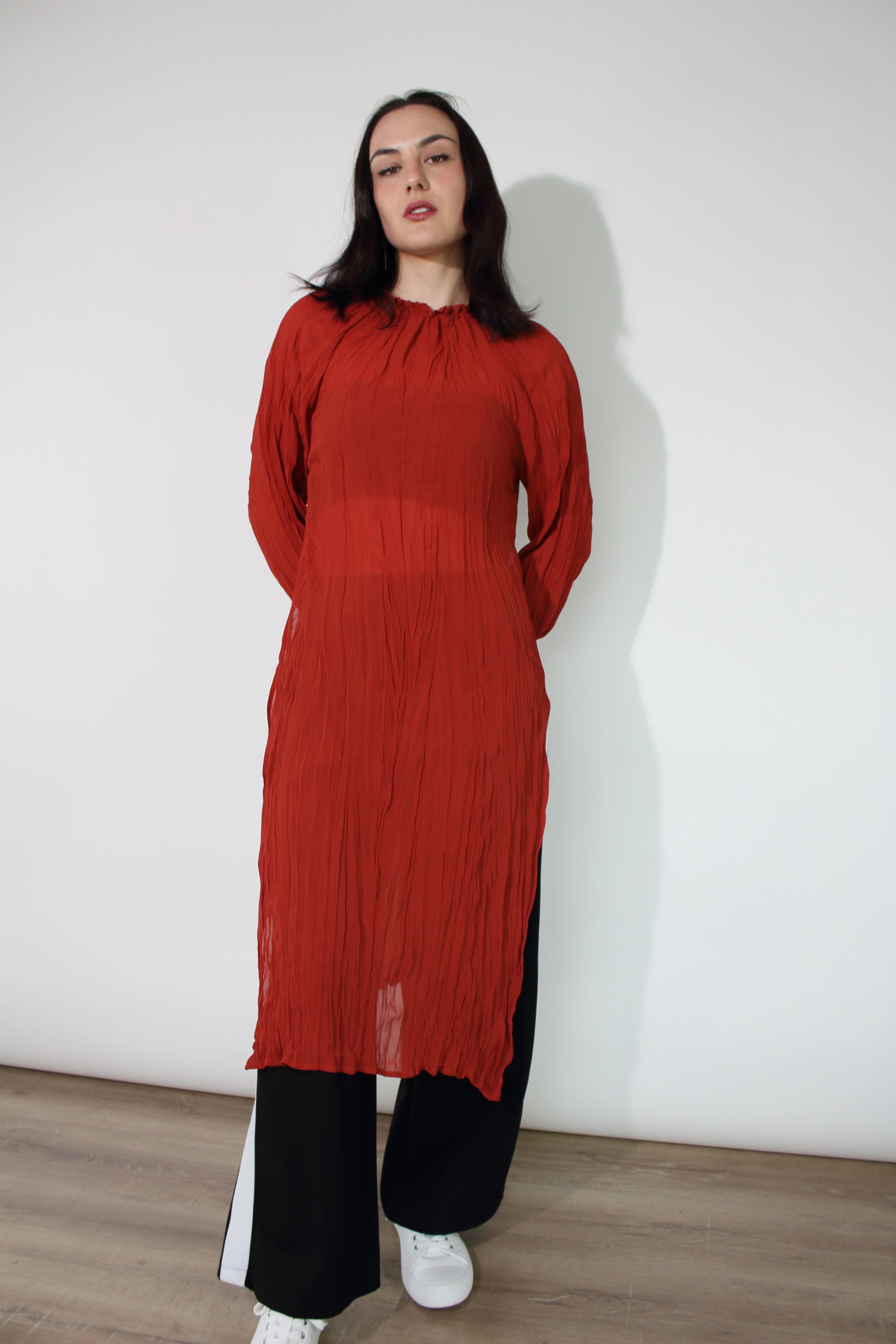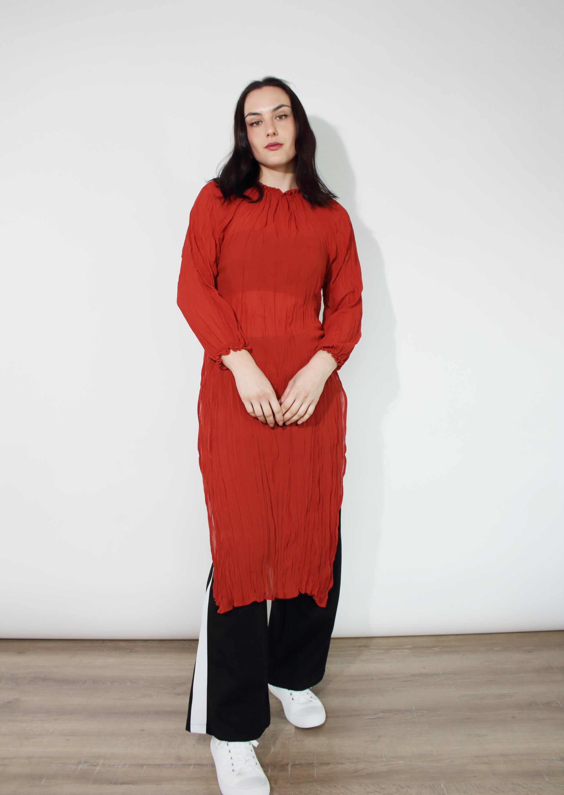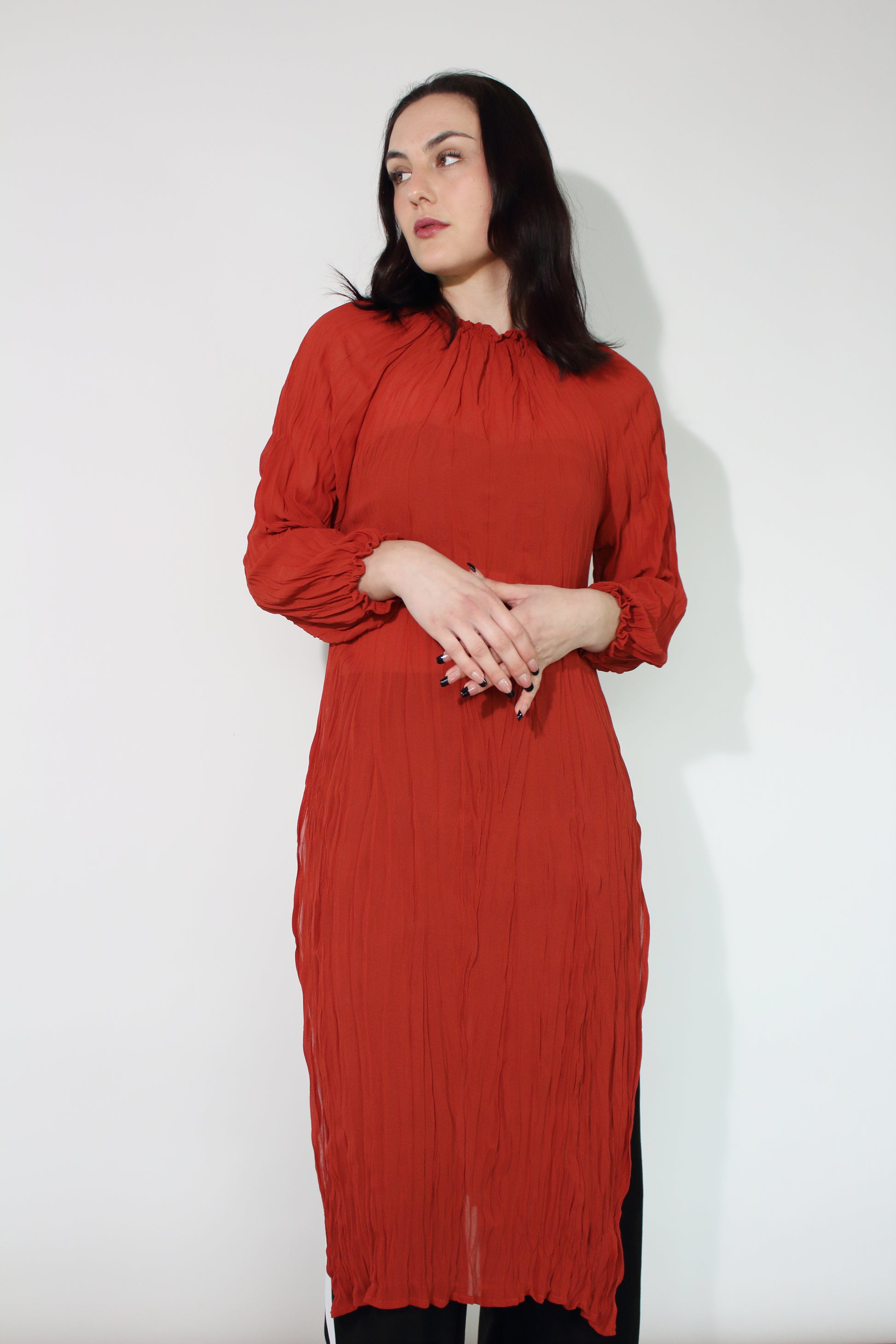 Jaclyn M Noah Crinkle Dress - Rust