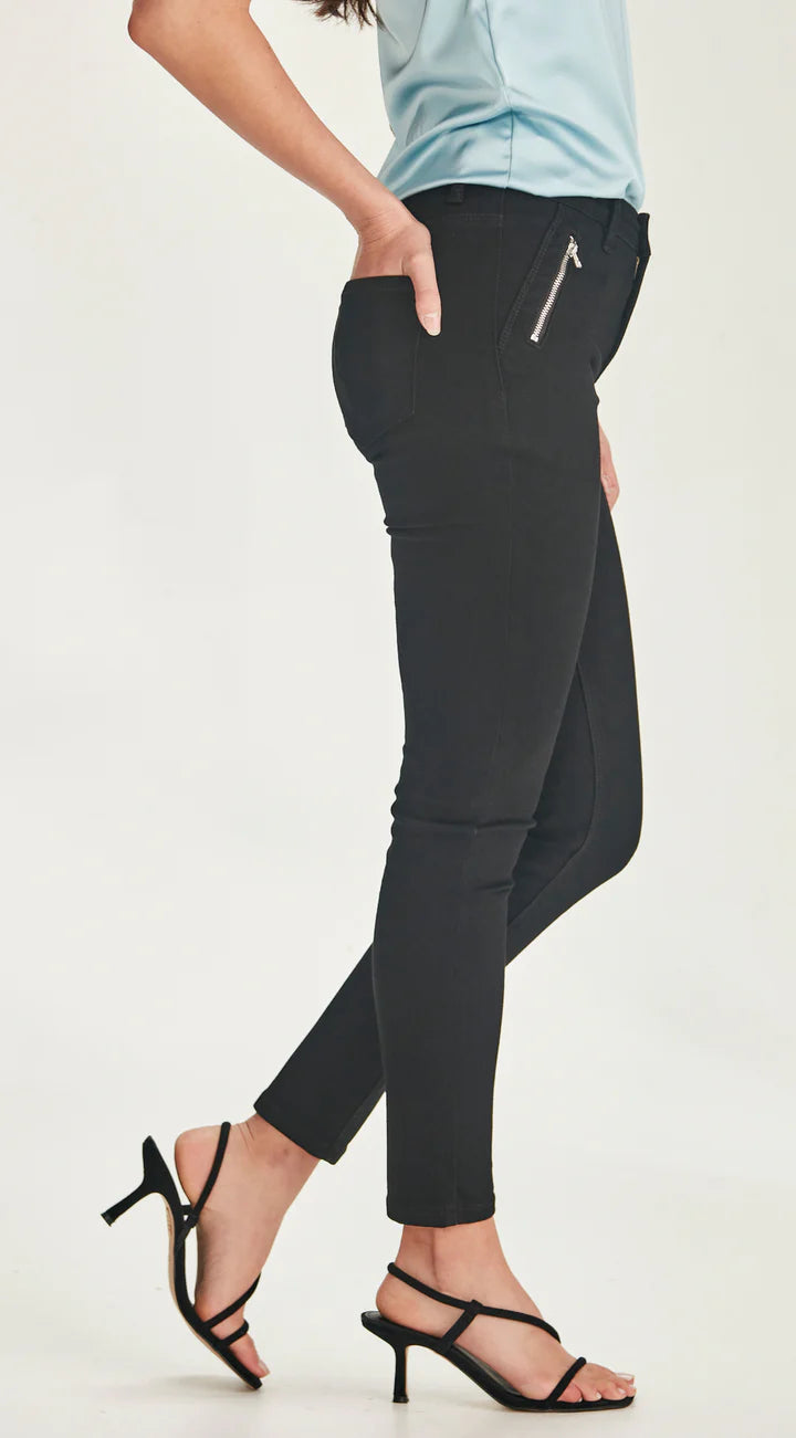 Fitted yet comfortable. Fixed waist band with belt loops, 70.5% cotton, 27.5% polyester, 2% spandex, zip fly and two zip up and useable front pockets.
