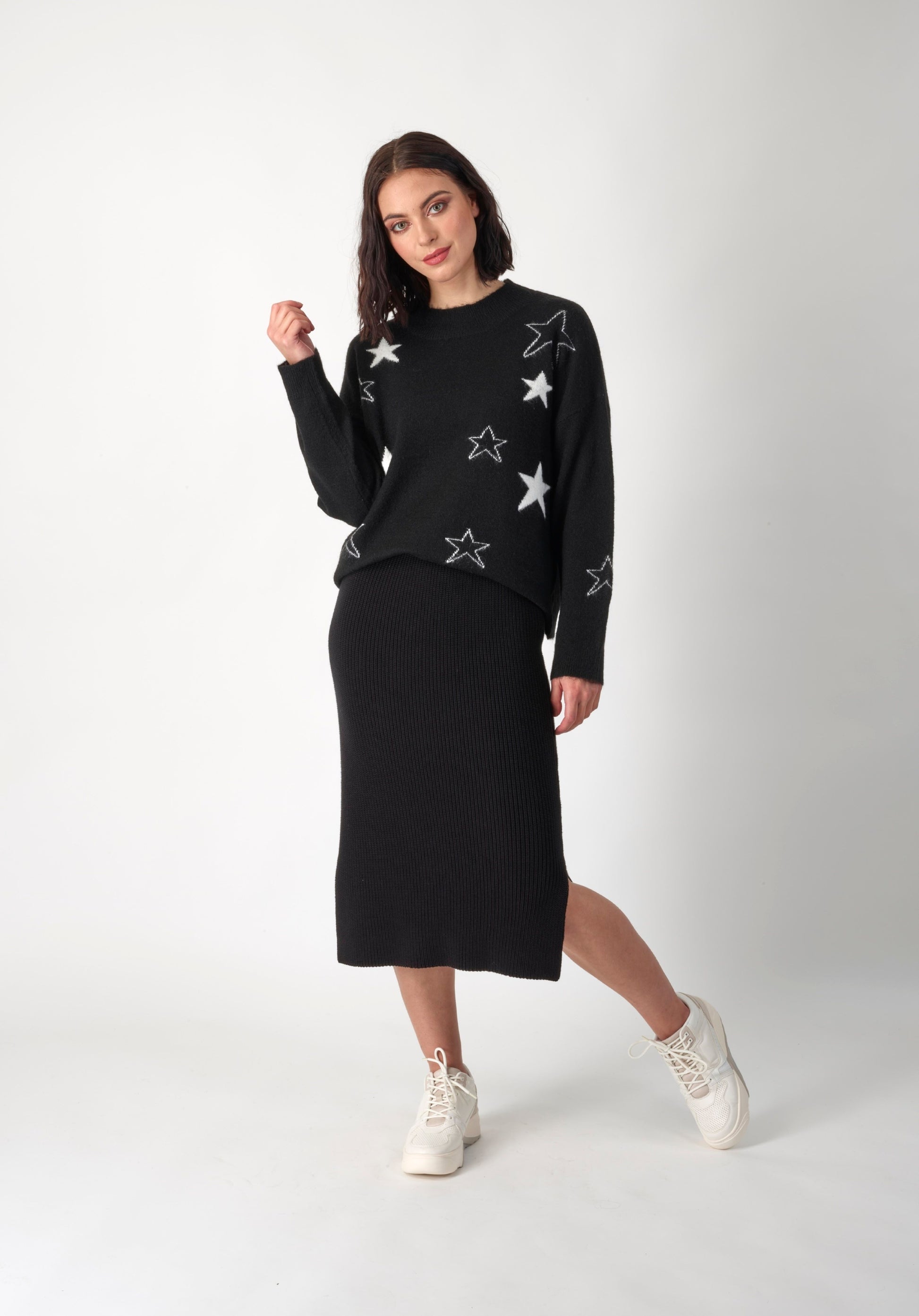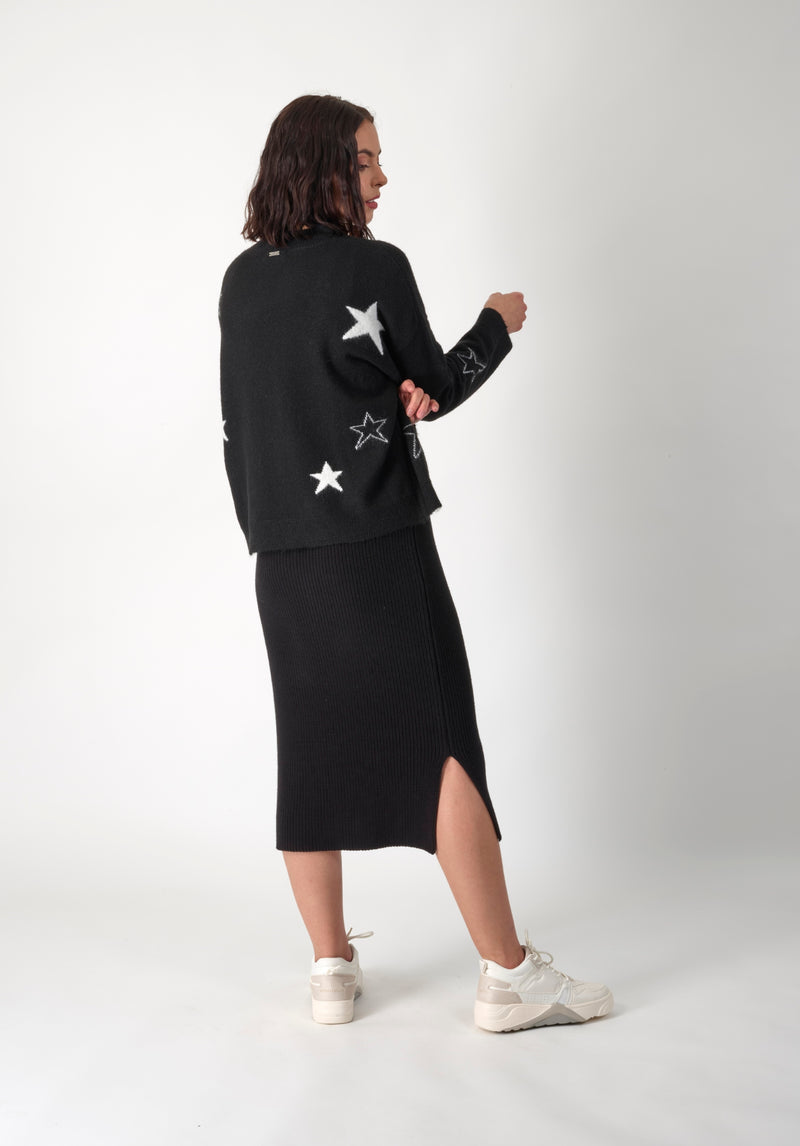 Softness, stretch, longer length and classic black are all the details in this beautiful Knewe Label skirt for the new season. Team with boots or sneakers and a noice top and jacket for the perfect Autumn/Winter outfit.
