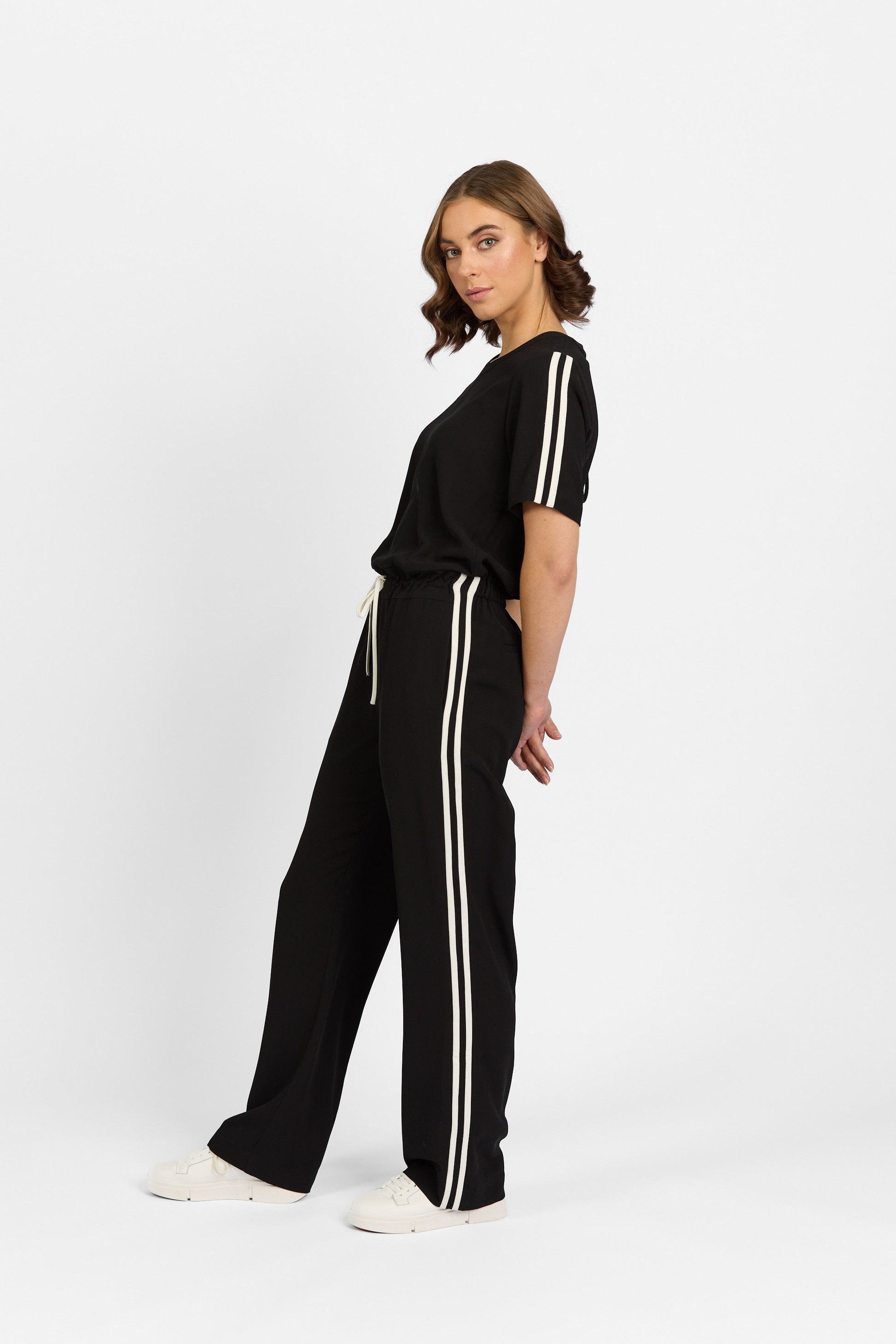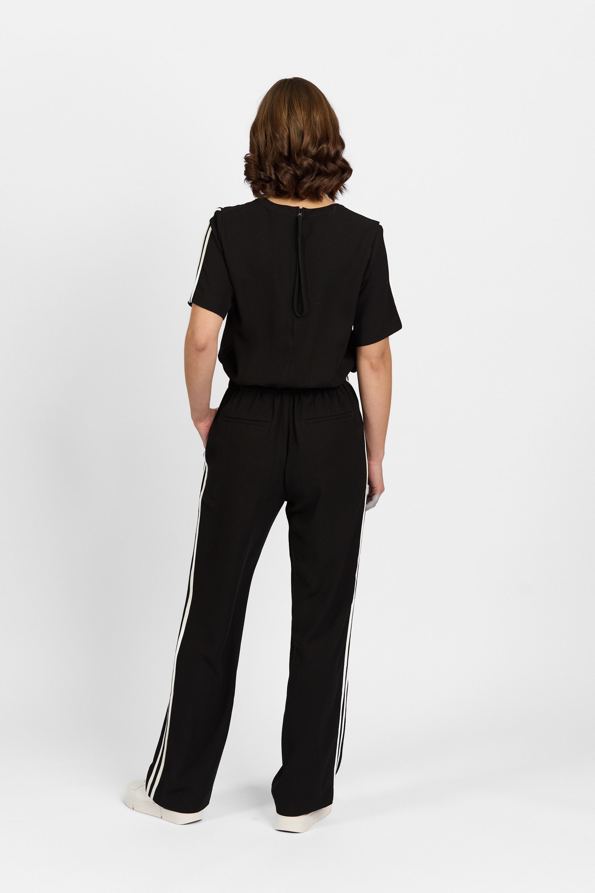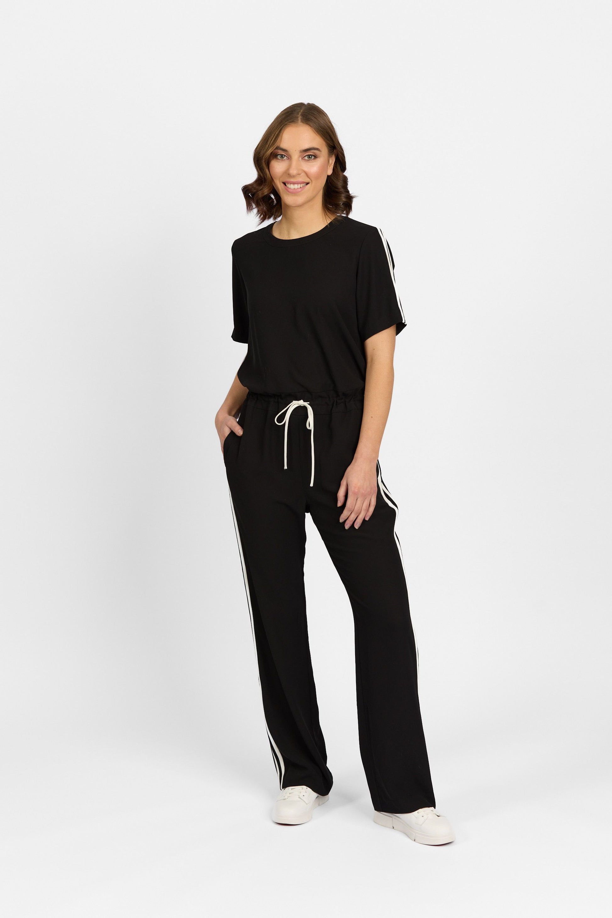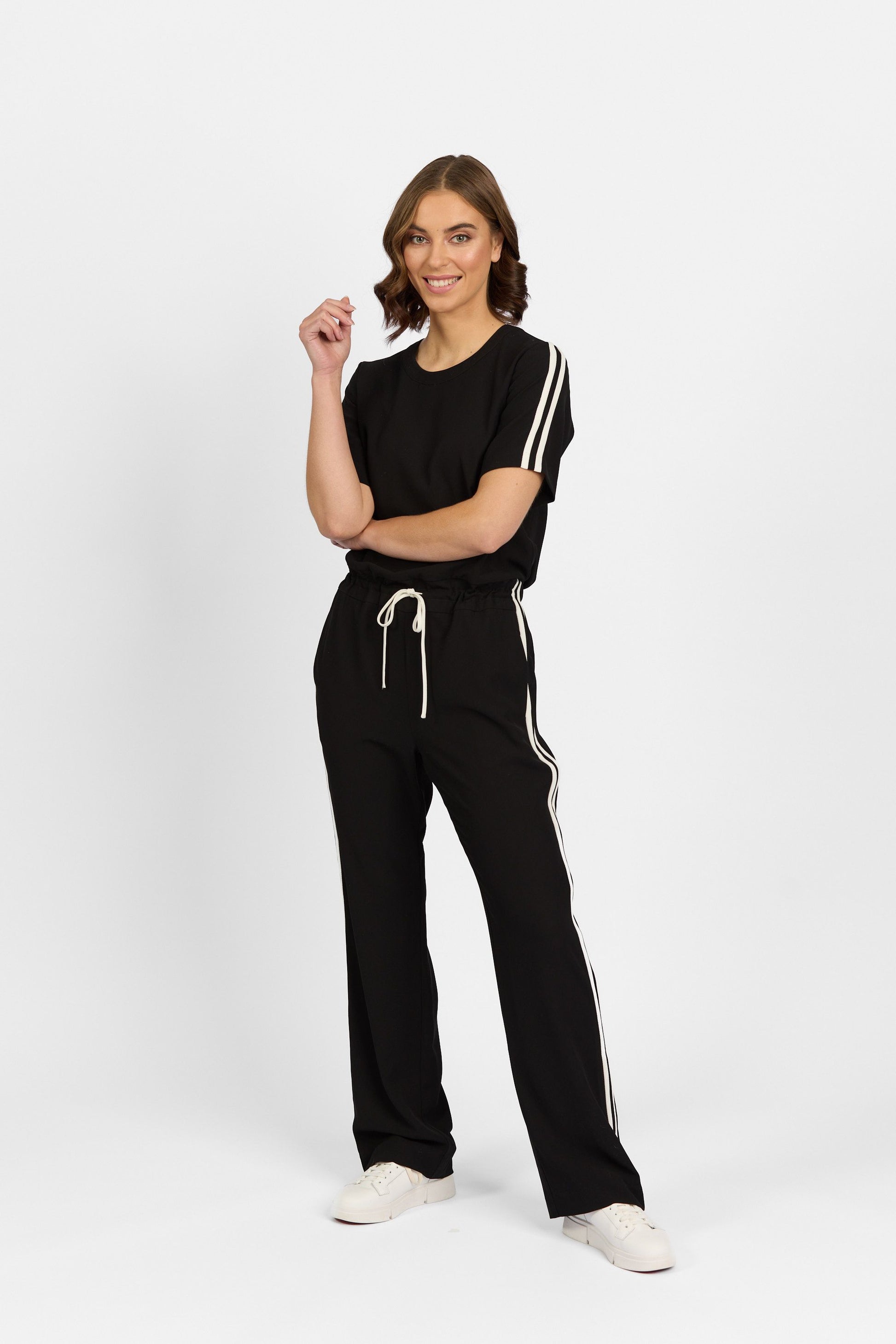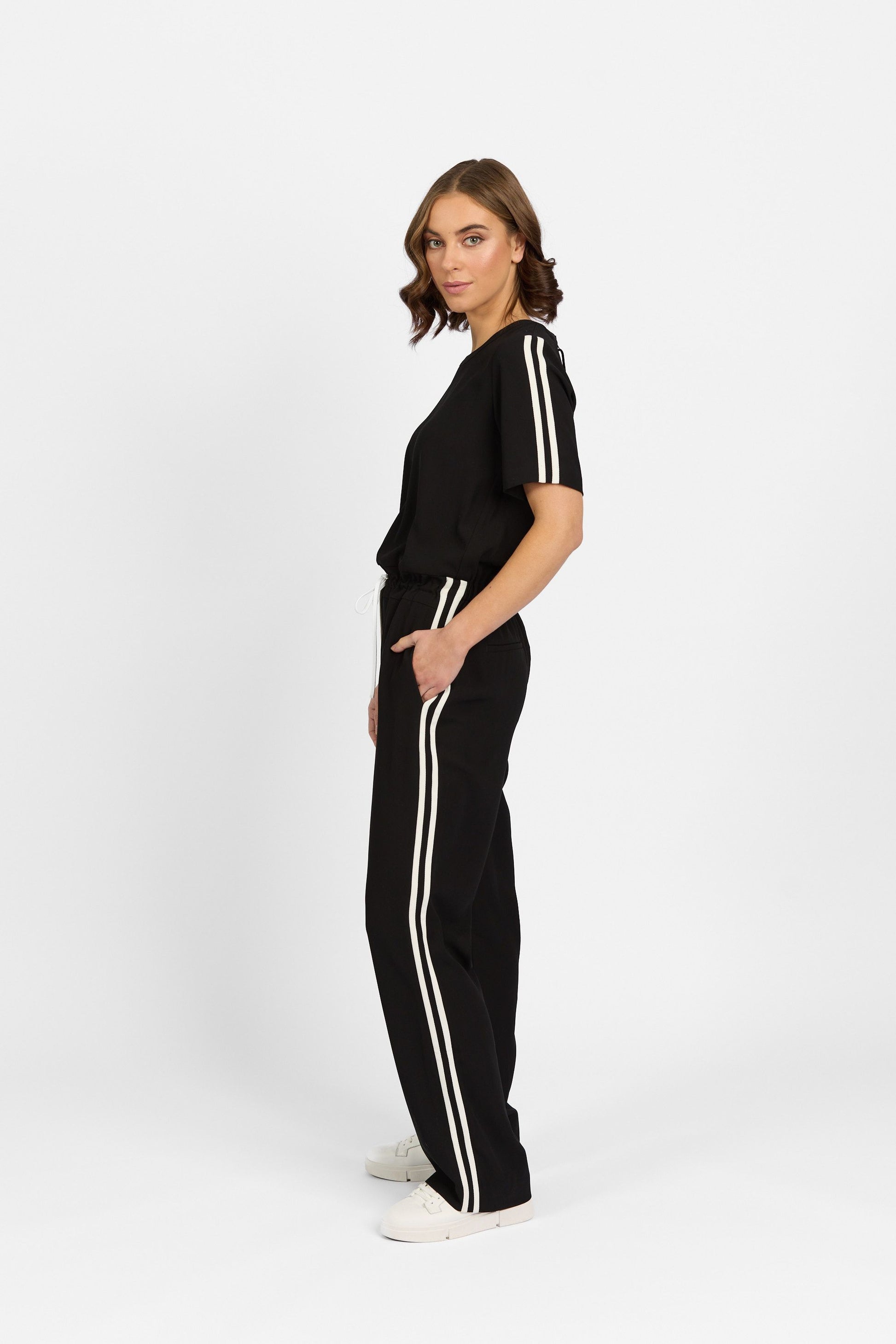 • Full length straight leg with contrast double stripe detail