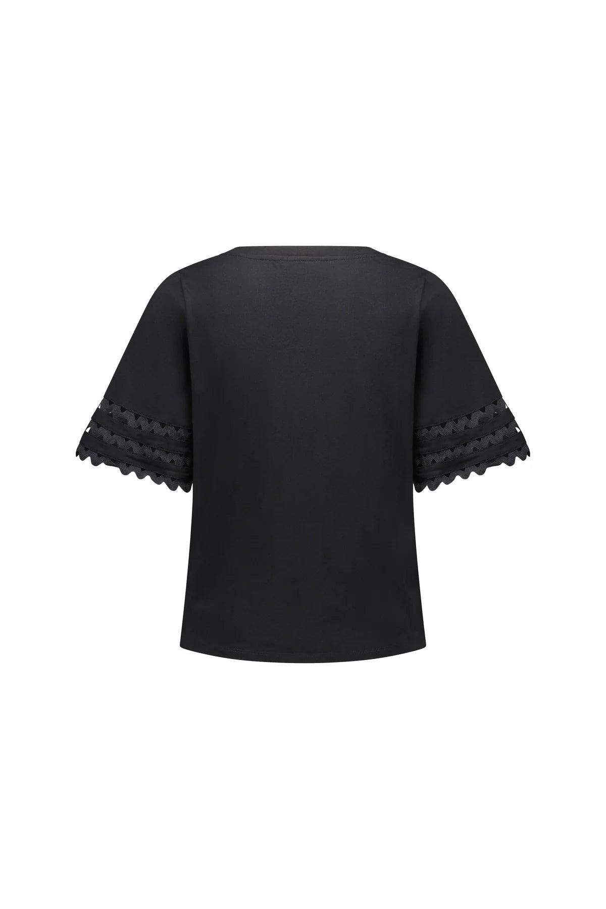 Short Sleeve Cotton Tee with Side Seam Splits and Sleeve Lace Detail