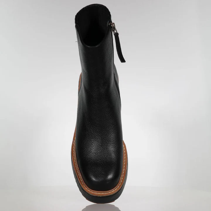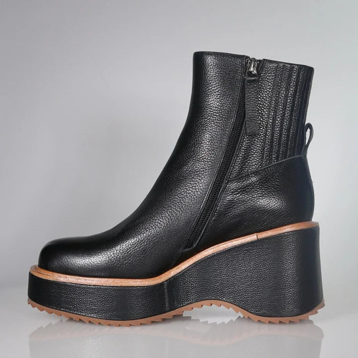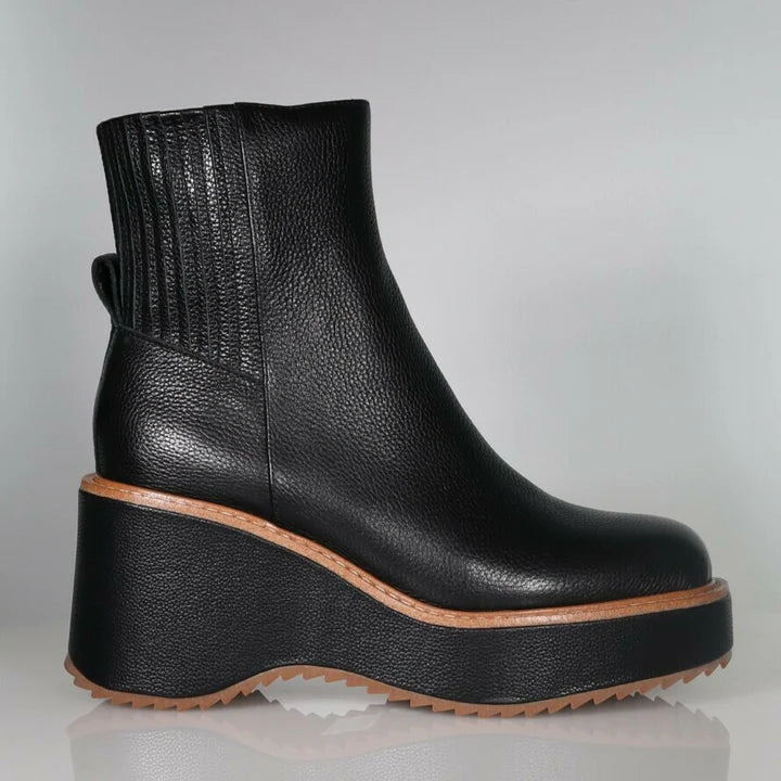 The Tokyo boot exudes boldness and refinement. Boasting a sleek form-fitting full leather upper with leather-covered elasticated gusset at the back to ensure a perfect fit for all ankle widths providing comfort and ease of wear. Elevating your look further, the Tokyo boot features a striking full leather-wrapped platform making a powerful fashion statement that commands attention and admiration. These undeniably stunning boots will go with anything.... trust us!!!