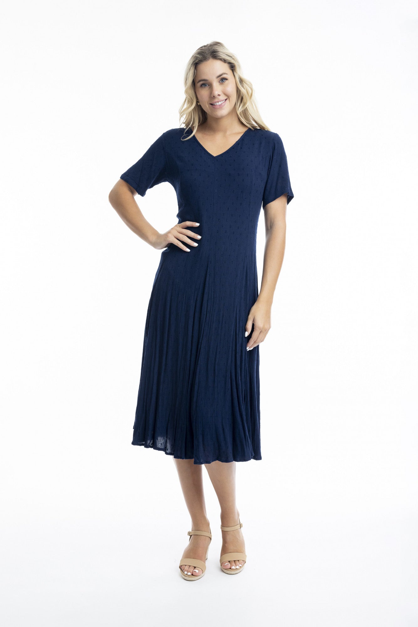Orientique | Essentials Rayon Dobby Short Sleeve Godet Dress