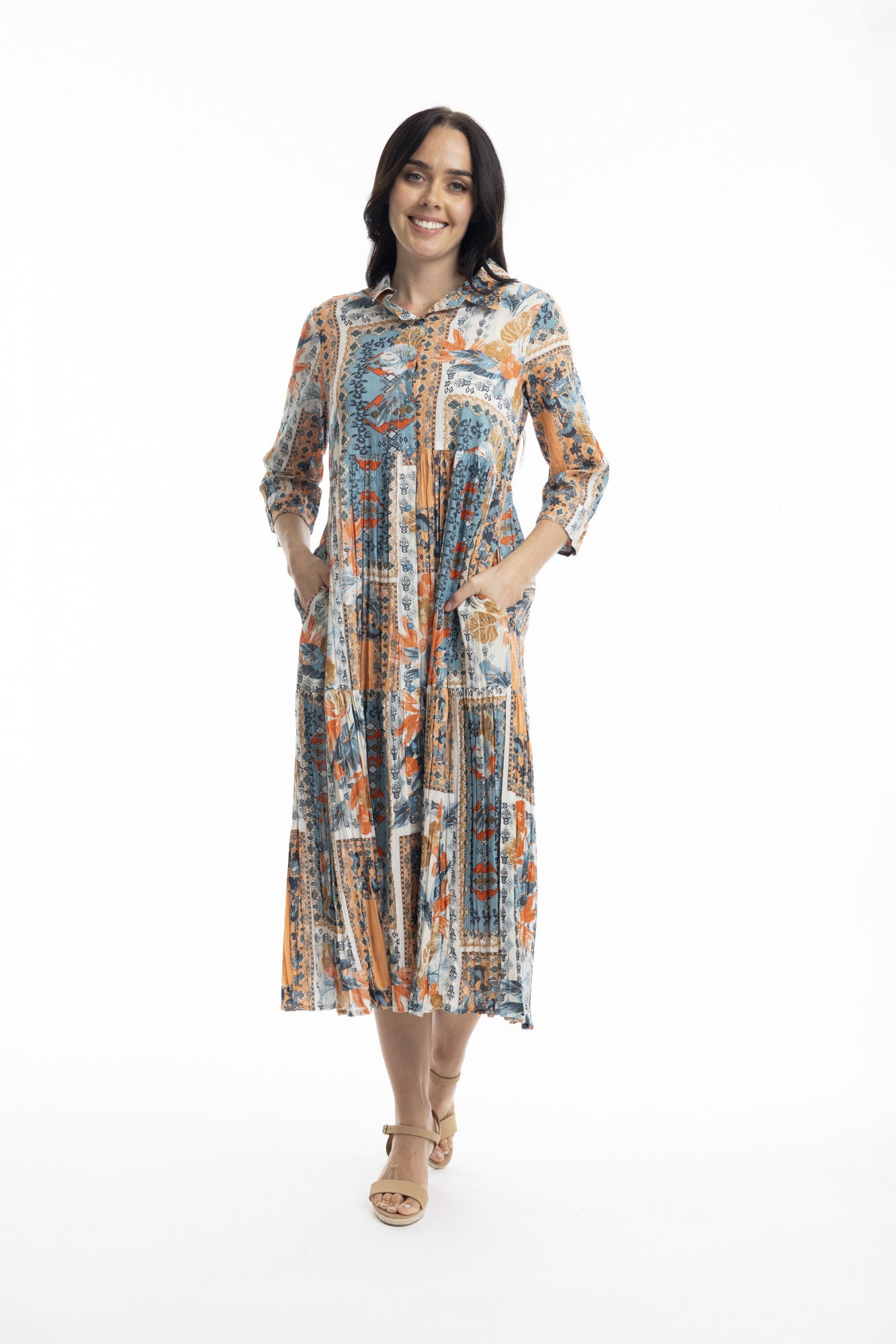 Stay cool and chic with our vibrant Kauai dress! This eye-catching piece features a playful mix of print and colour, making it ideal for sunny days out. With its relaxed fit, tiered skirt, classic button up collar, three-quarter sleeves, and breathable fabric, you'll stay comfortable and stylish all season long.