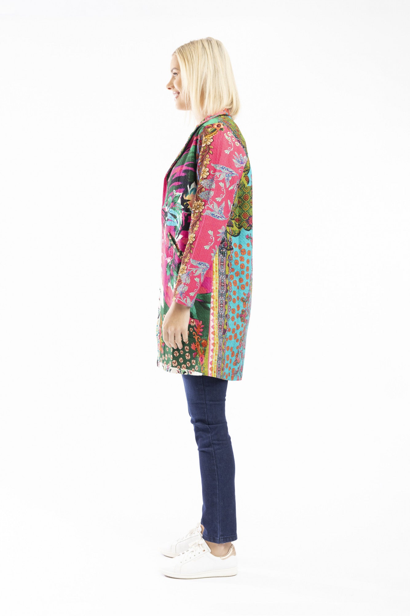 Our classic digital coat is a fun statement piece for your winter wardrobe. This coat falls just above the knee and features gorgeous intricate prints, bright and vibrant colours, and single breasted button detailing. Created using heavy luxurious 100% organic cotton fabric, this coat will keep you warm during the winter months while also supporting sustainability.