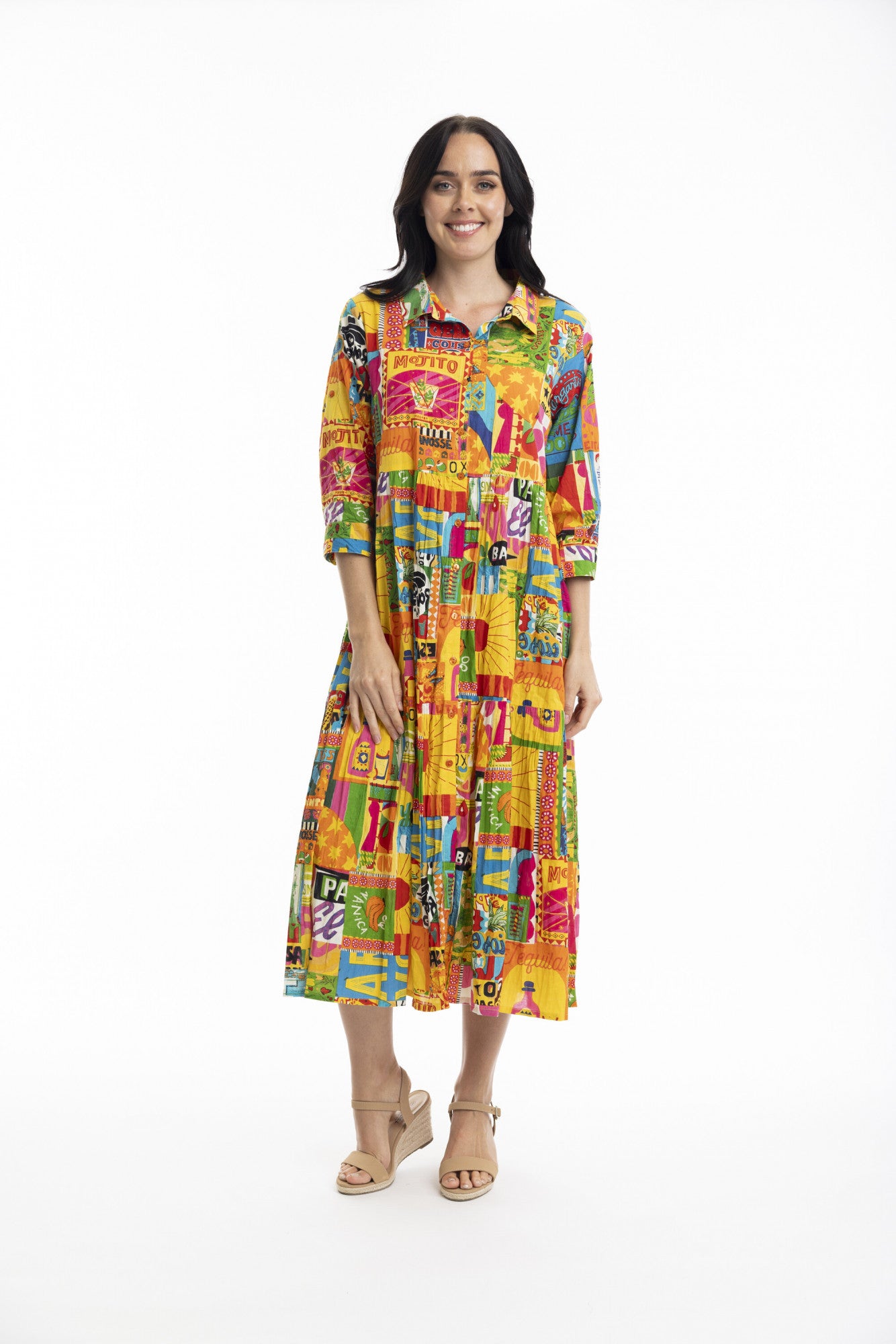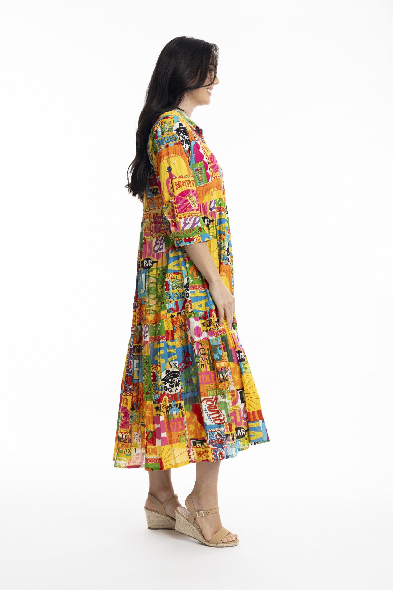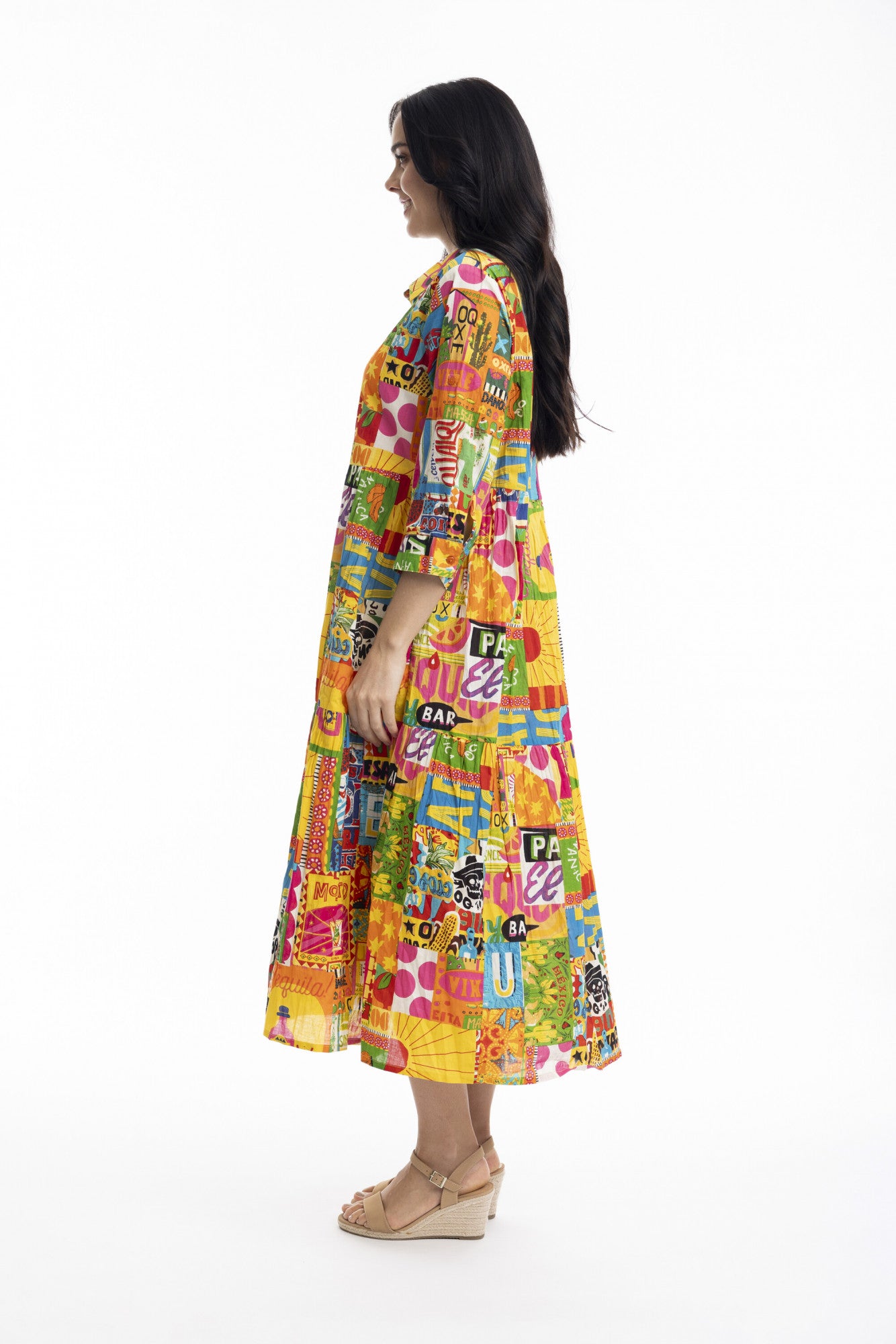 Capture the essence of summer with our Ocampo dress! This eye-catching piece features a playful mix of print and colour, making it ideal for sunny days out. With its relaxed fit, tiered skirt, classic button up collar, three-quarter sleeves, and breathable fabric, you'll stay comfortable and stylish all season long.