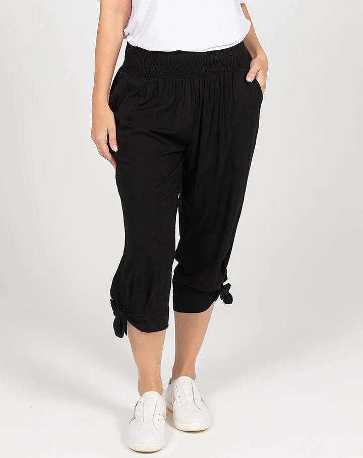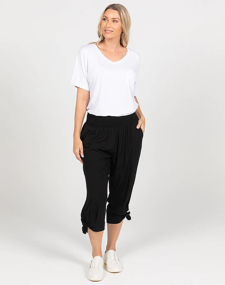 These simple yet stylish 3/4 length pants are perfect for summer. A comfortable and easy wearing style that can be worn from day to night to a variety of occasions. Change the look from casual flats and basic tee to wedges and a stylish top!