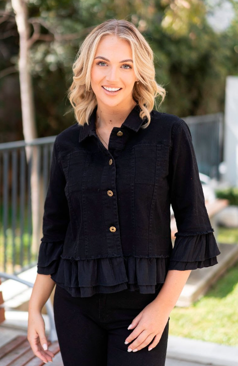 QQ Fashion | Frill Trim Denim Jacket - Black