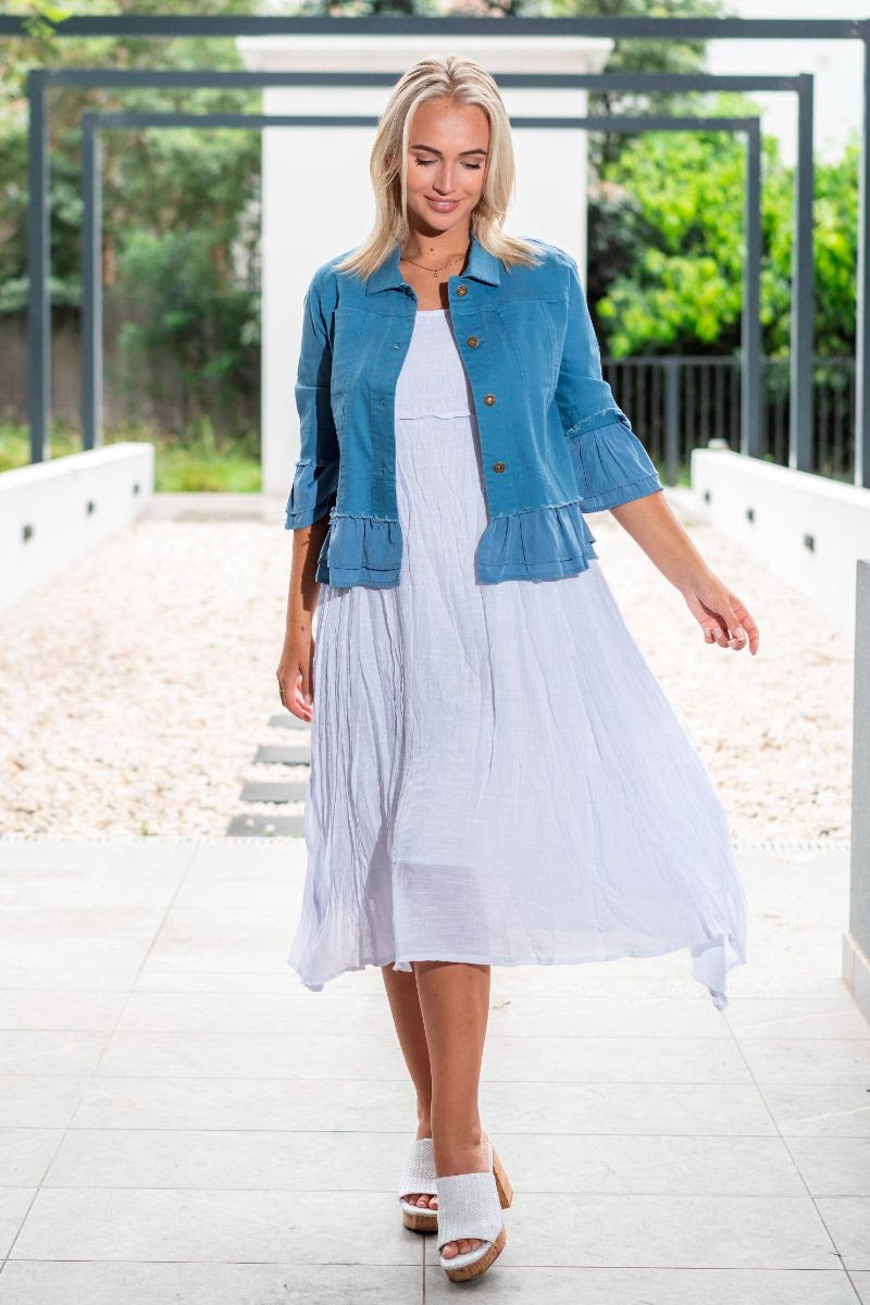 QQ Fashion | Frill Trim Denim Jacket - Denim