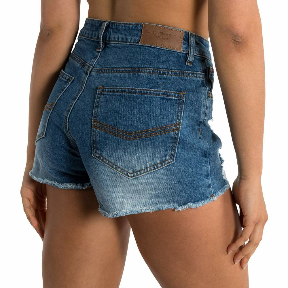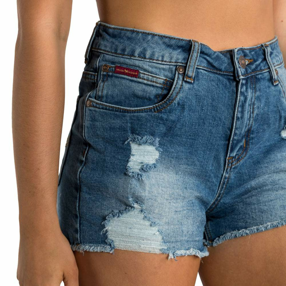 Ringers Western- Jessie Womens Mid Rise Ripped Denim Short - True Blue