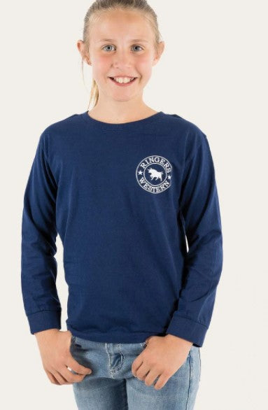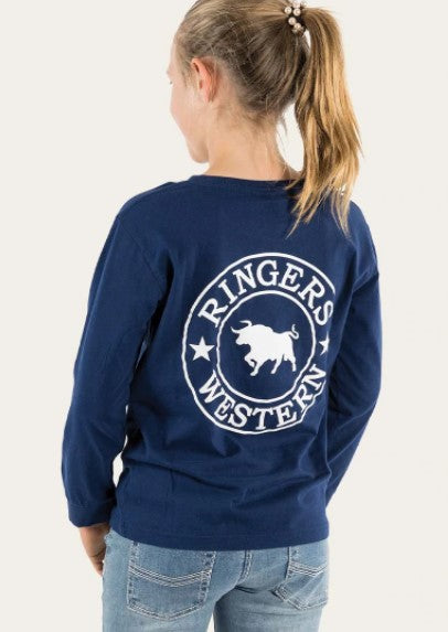Ringers Western Signature Bull Long Sleeve TShirt - Navy/White Stripe