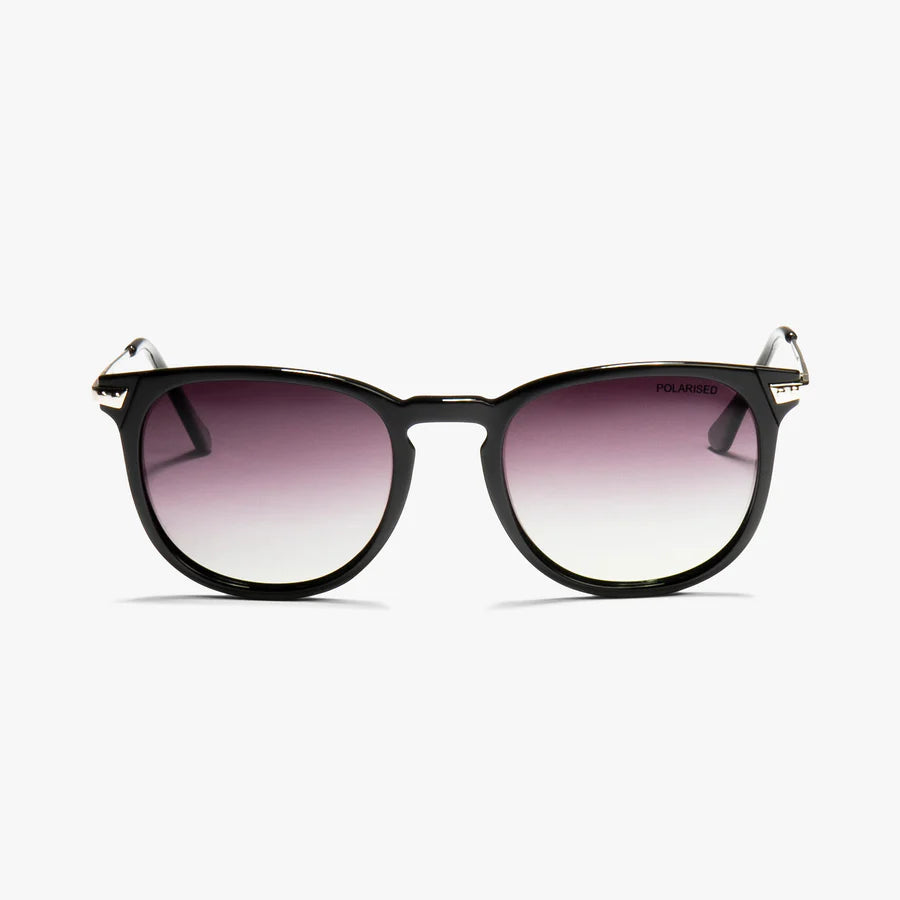 Her gradient smoke lenses are majestic in effect and are polarised with 100% UV protection. She exudes sophistication with her black frame and thin metal arms etched with Locello.