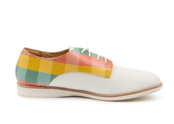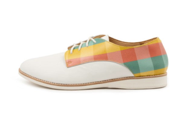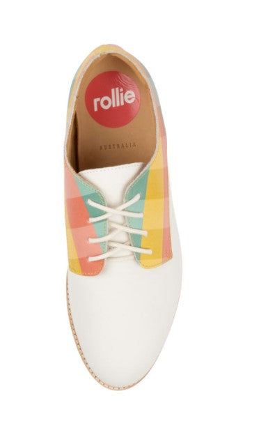 A fun take on the classic Derby in tone white and a summery check. Made to add some fun colour to your wardrobe. Like all Rollie shoes, the Derby is comfy and light, the perfect shoe for all day wear.