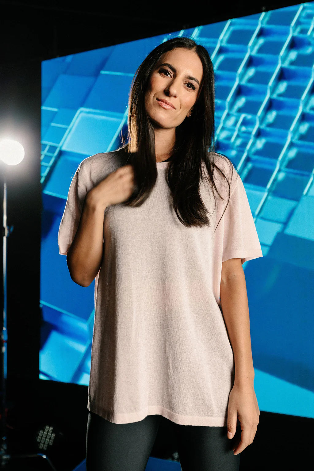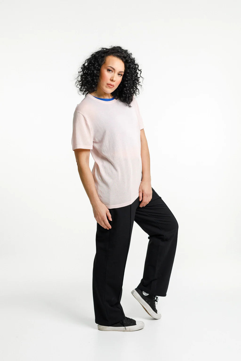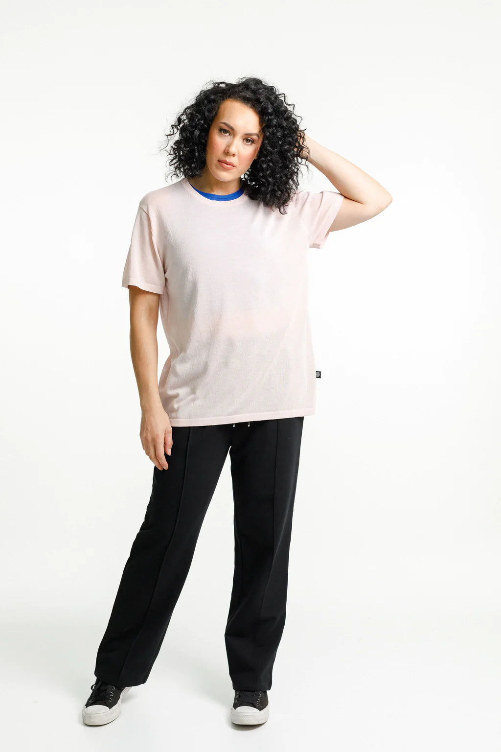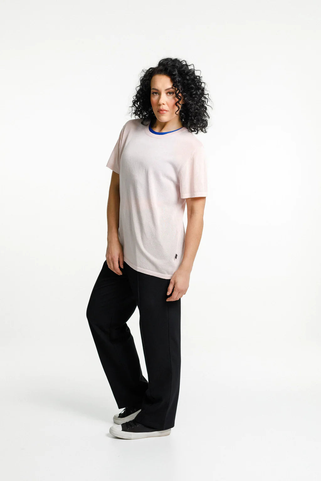 With a crew neckline, straight cut hem and a sleeve length just shy of the elbow - this tee is the ultimate boyfriend tee. Sculpted in a lightweight knit that is soft and perfect for the cooler climate