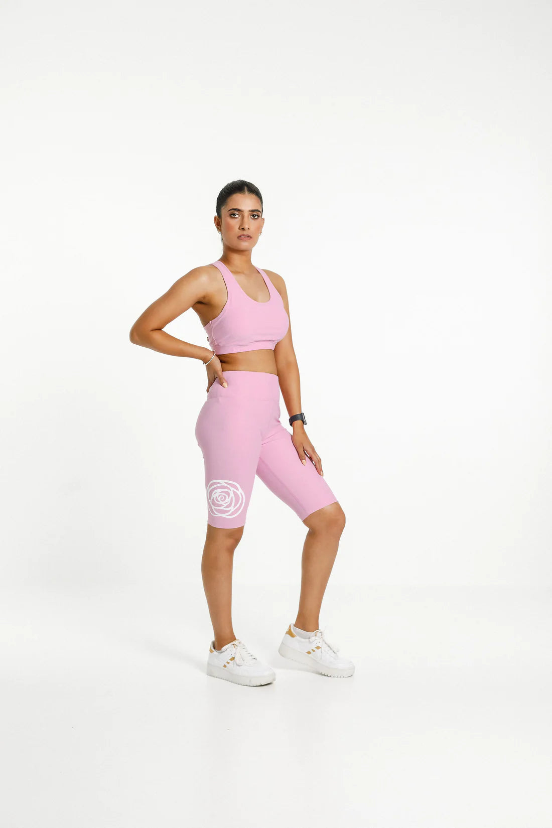 The Workout Bra features a cut out style back, an elastic band and removable bra cups.