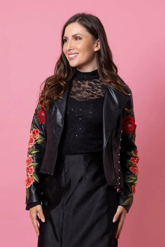 ROSIE FAUX LEATHER JACKET ROSE BLACK